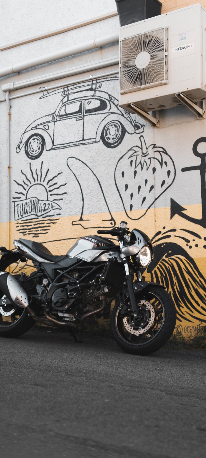 Wallpaper: Motorcycle, graffiti, streets - 720x1600