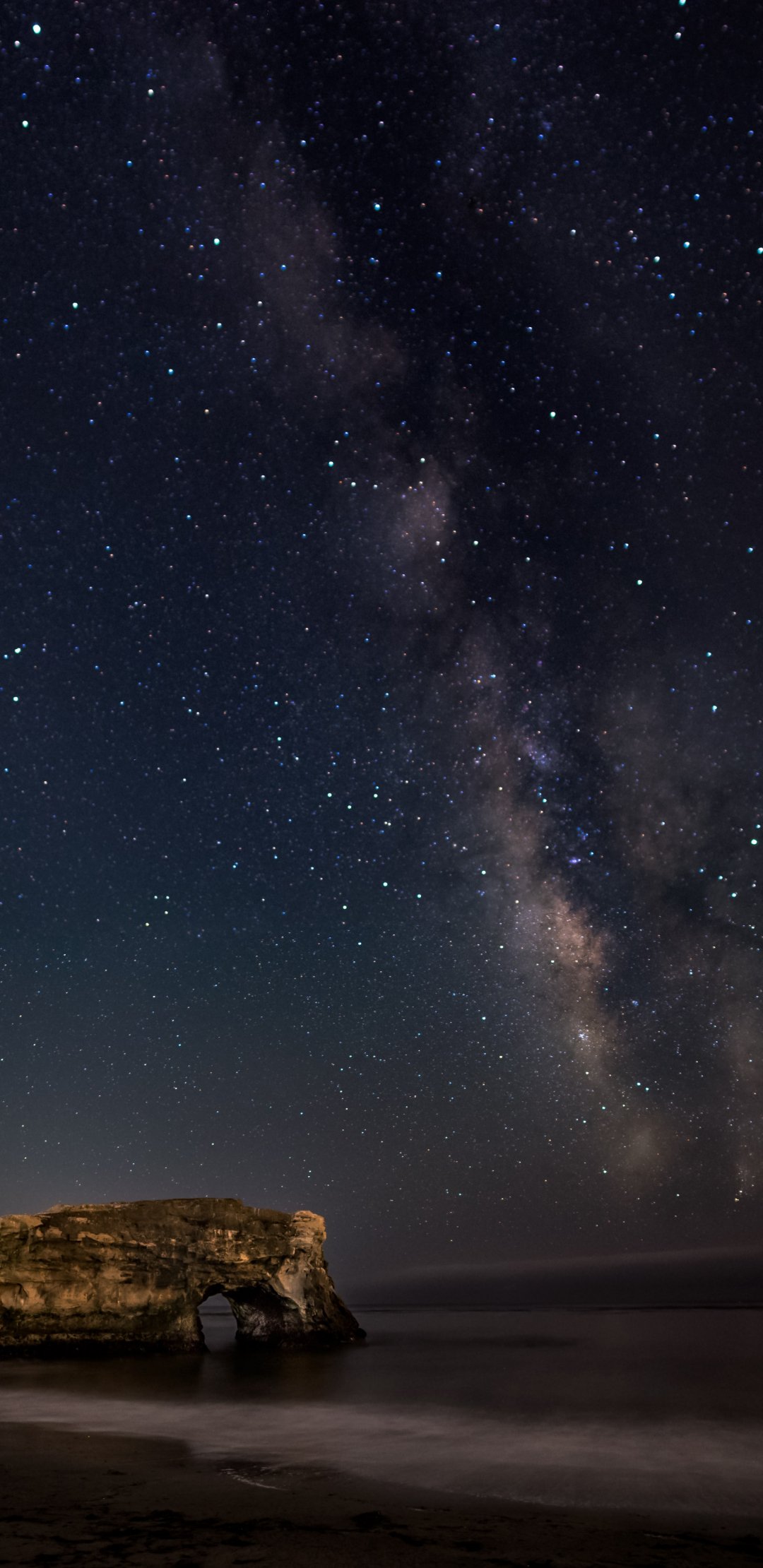 Wallpaper: coast, starry night - 1080x2220