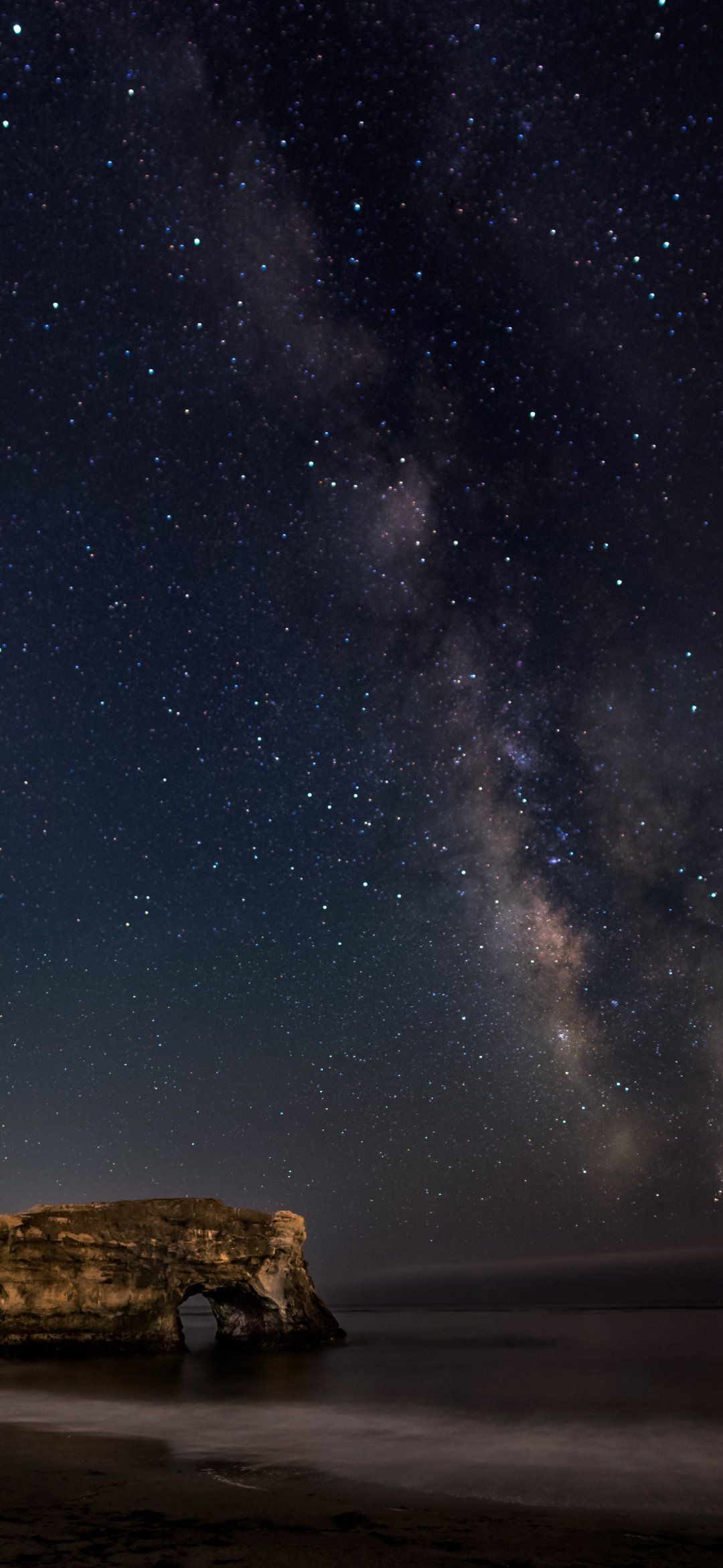 Wallpaper: coast, starry night - 1080x2340