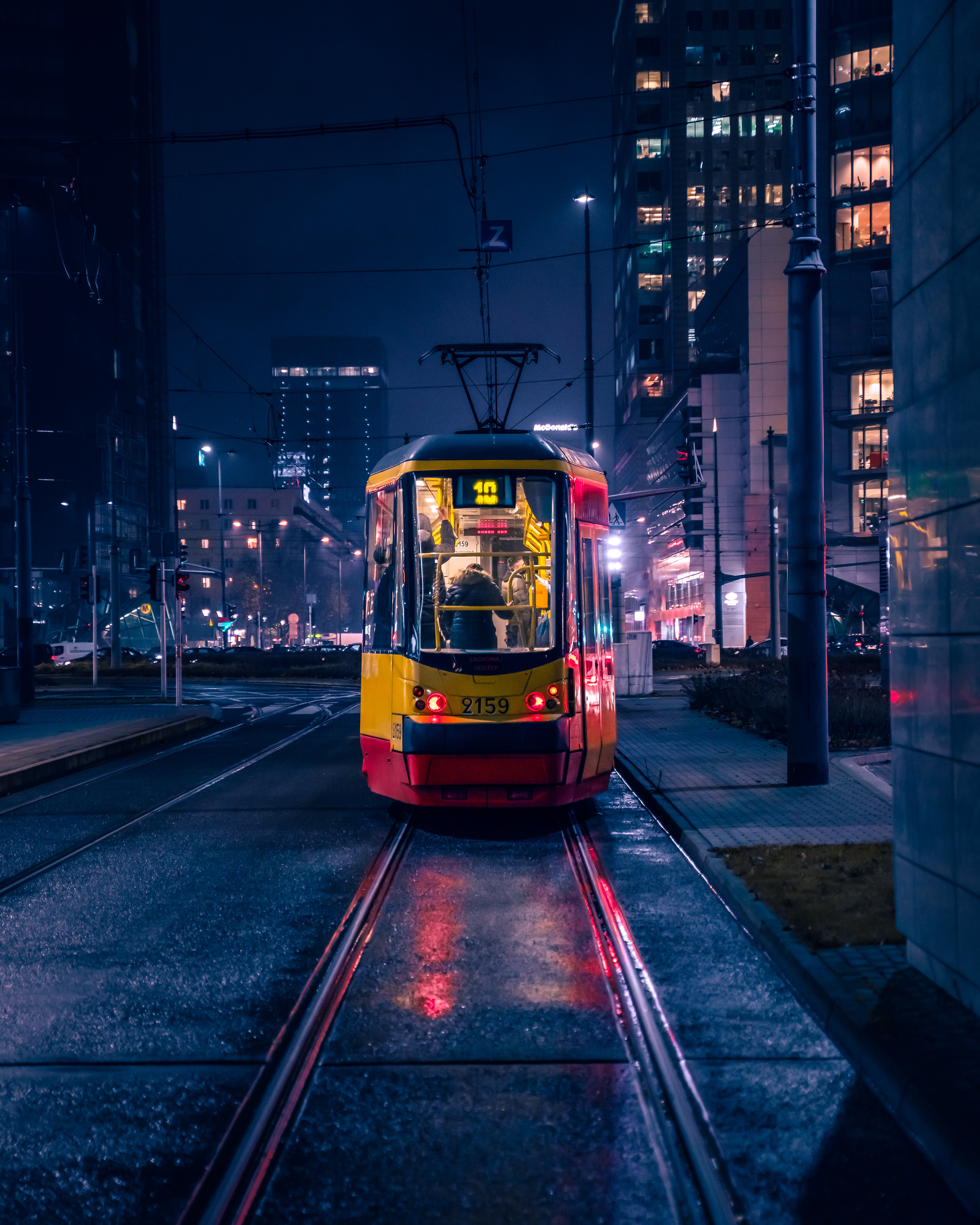 Wallpaper: night city, tram - 5256x6570
