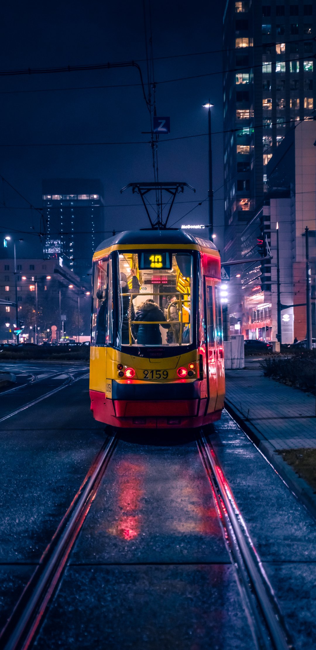 Wallpaper: night city, tram - 1080x2220