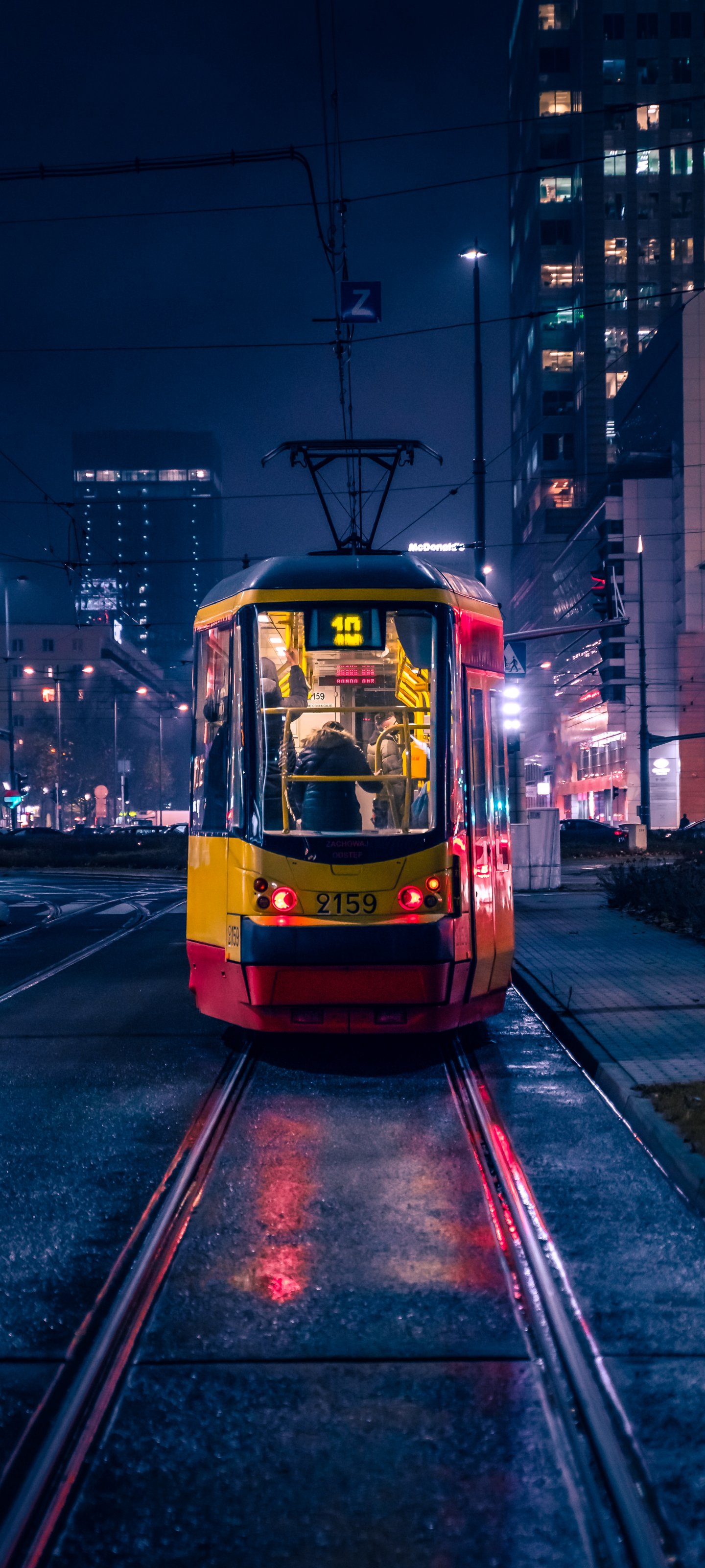 Wallpaper: night city, tram - 1440x3200