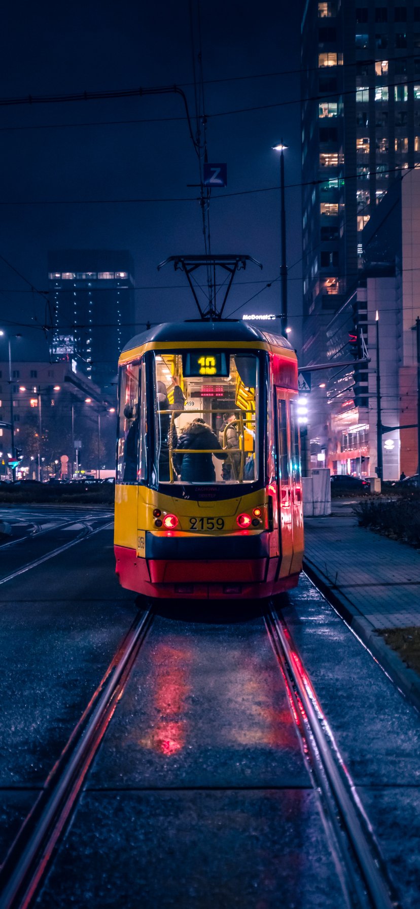 Wallpaper: night city, tram - 828x1792