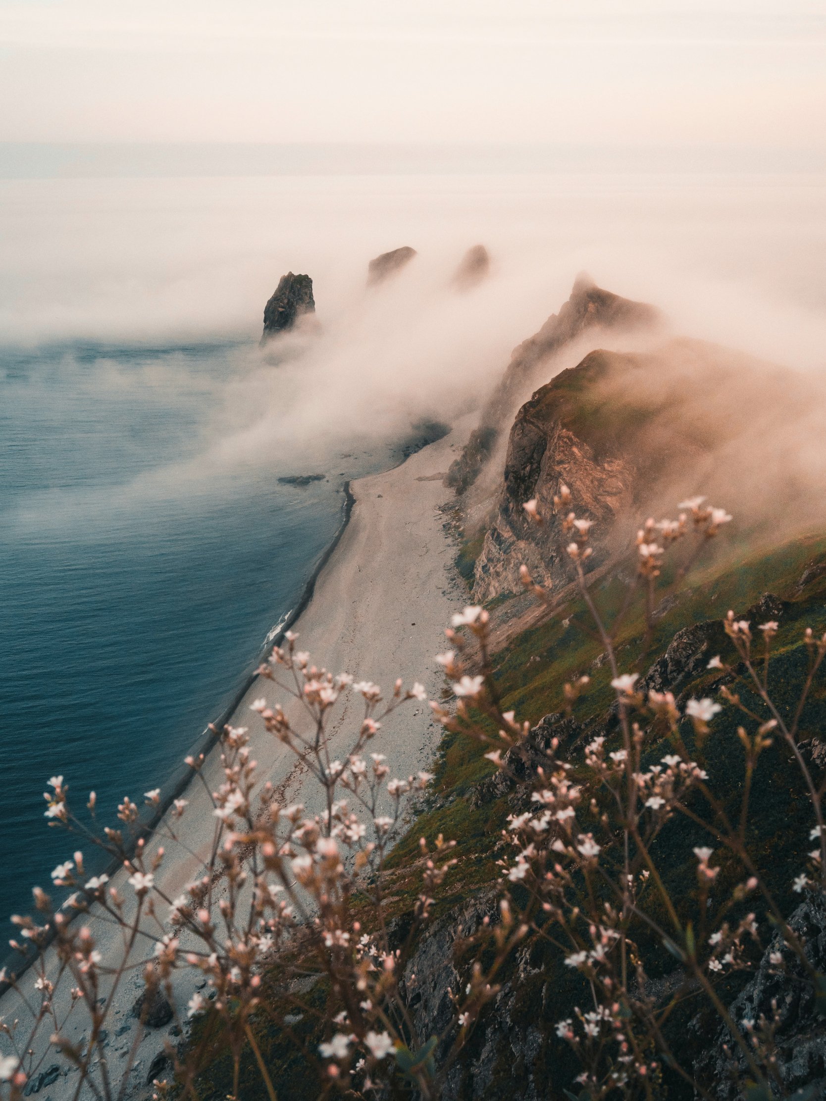 Wallpaper: mountains, sea, fog - 1668x2224