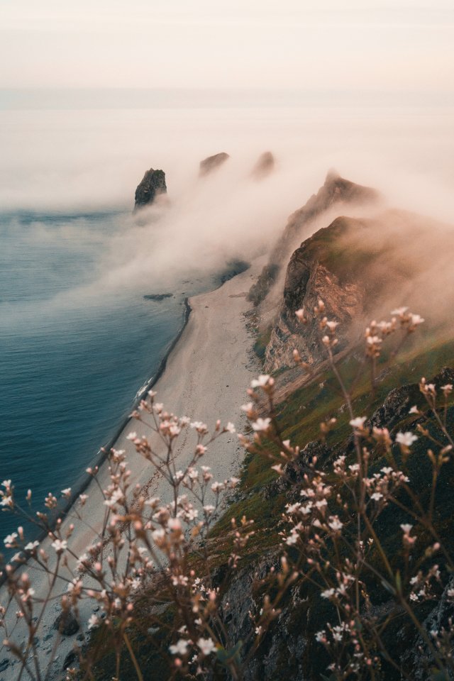 Wallpaper: mountains, sea, fog - 640x960