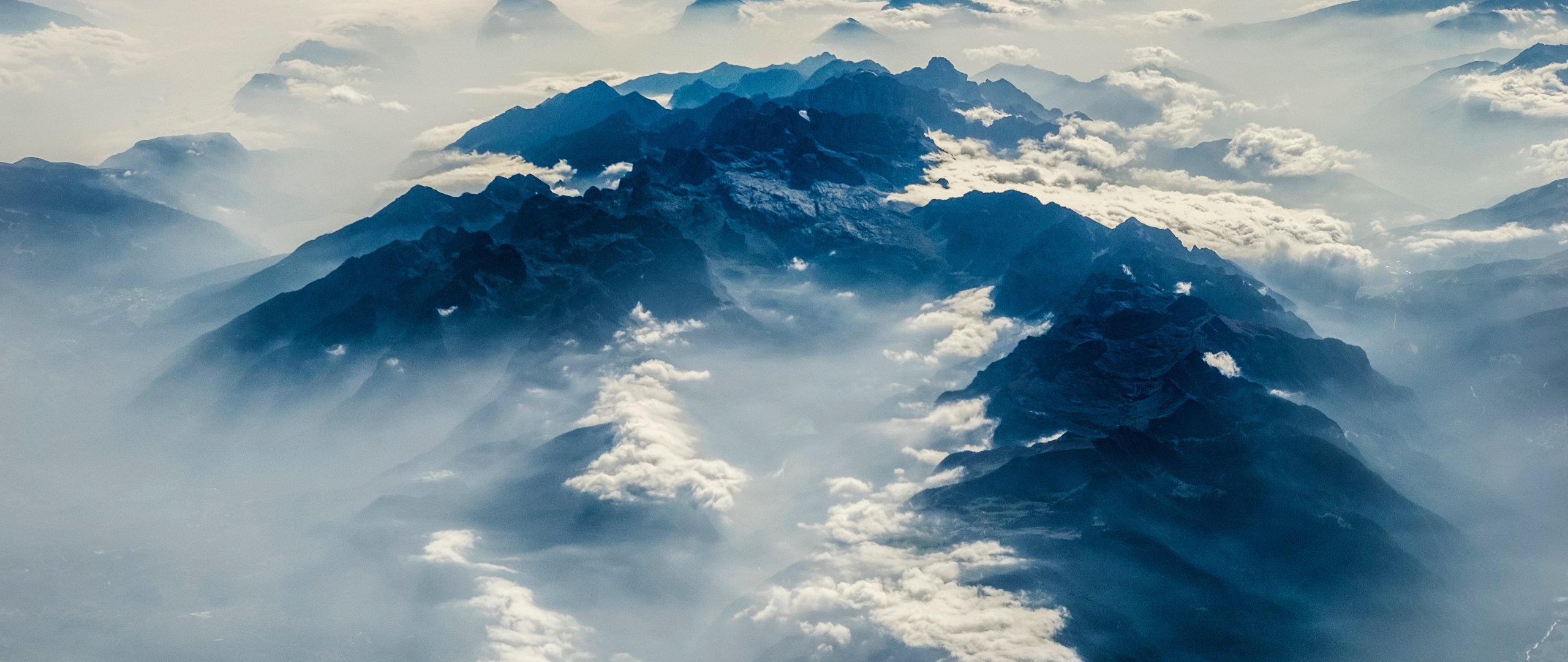 Wallpaper: Alps, mountains, bird's eye view - 2560x1080