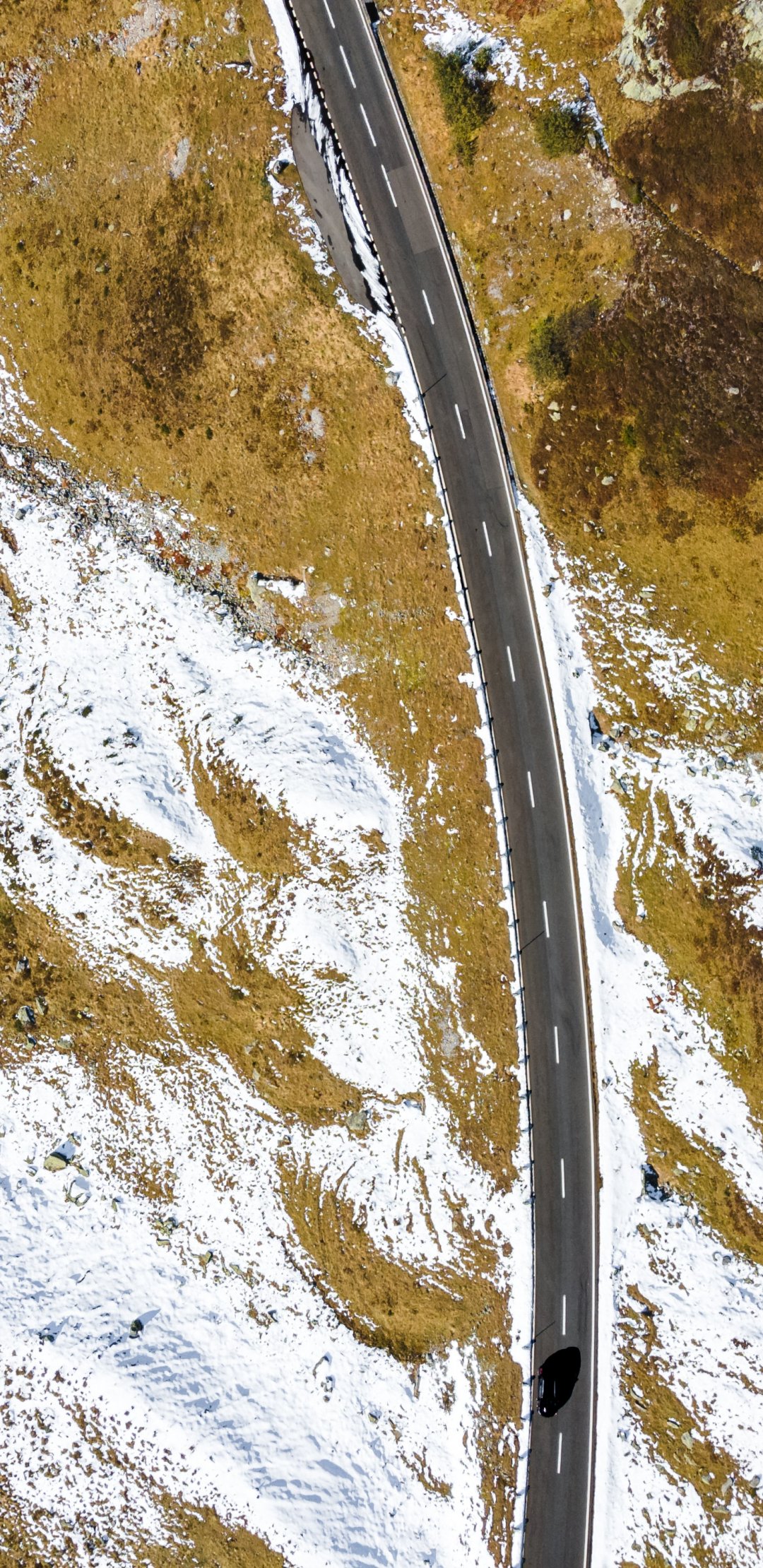 Wallpaper: top view, road, snow - 1080x2220