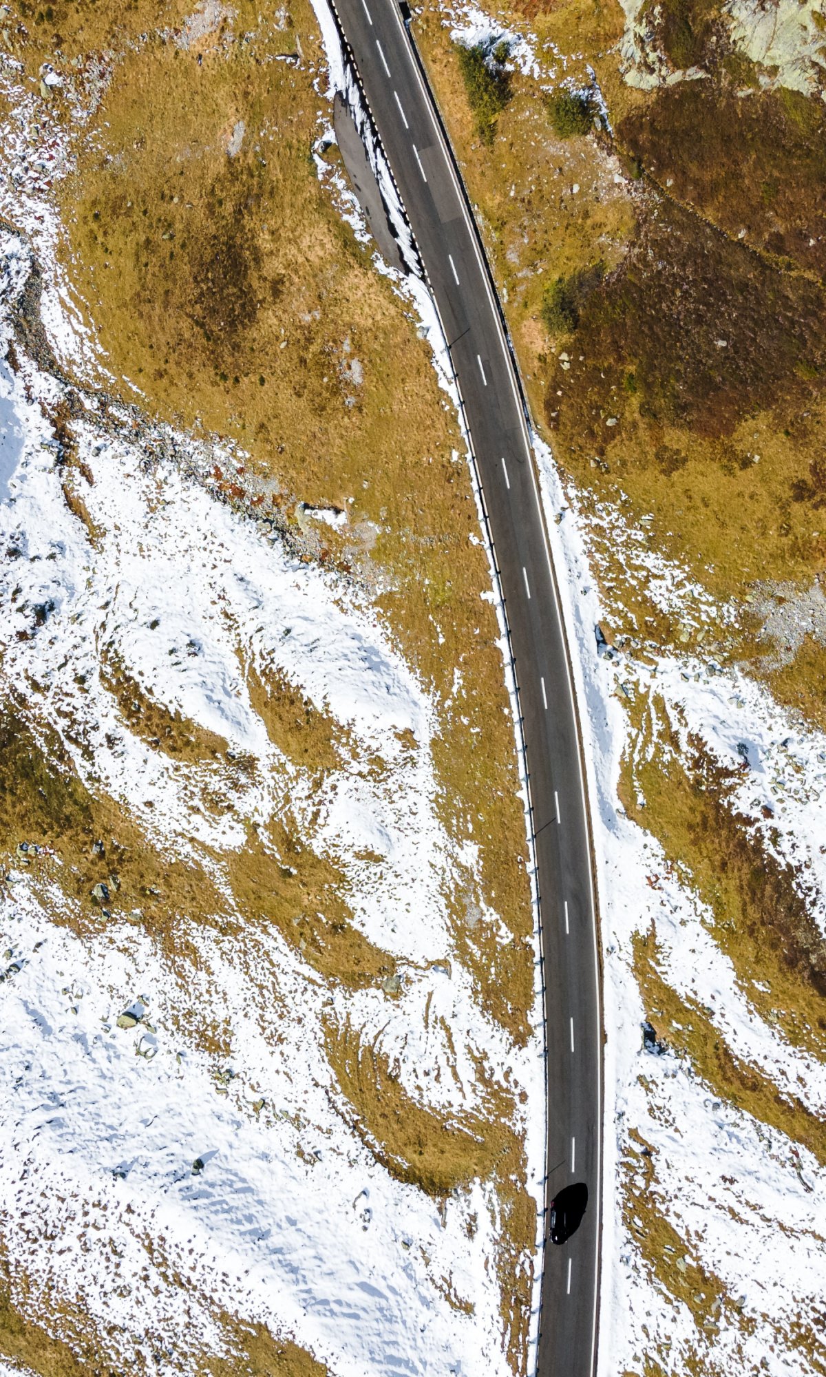 Wallpaper: top view, road, snow - 1200x2000