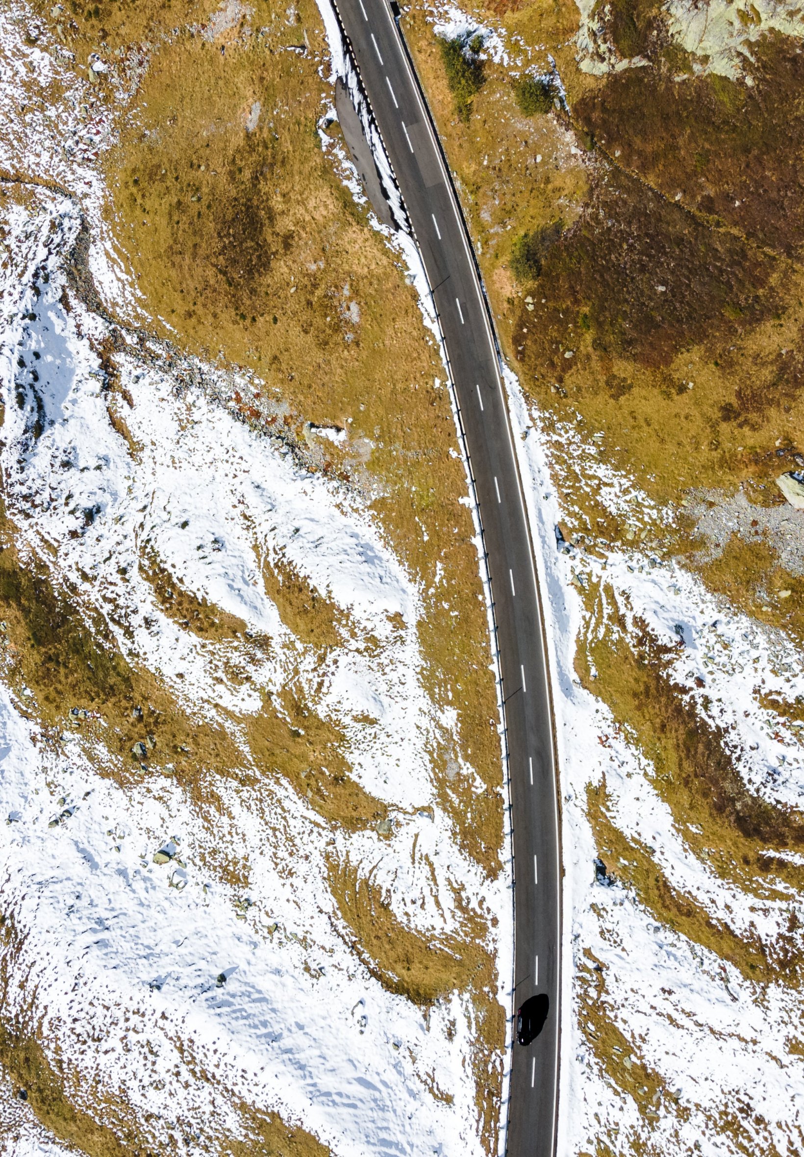 Wallpaper: top view, road, snow - 1640x2360