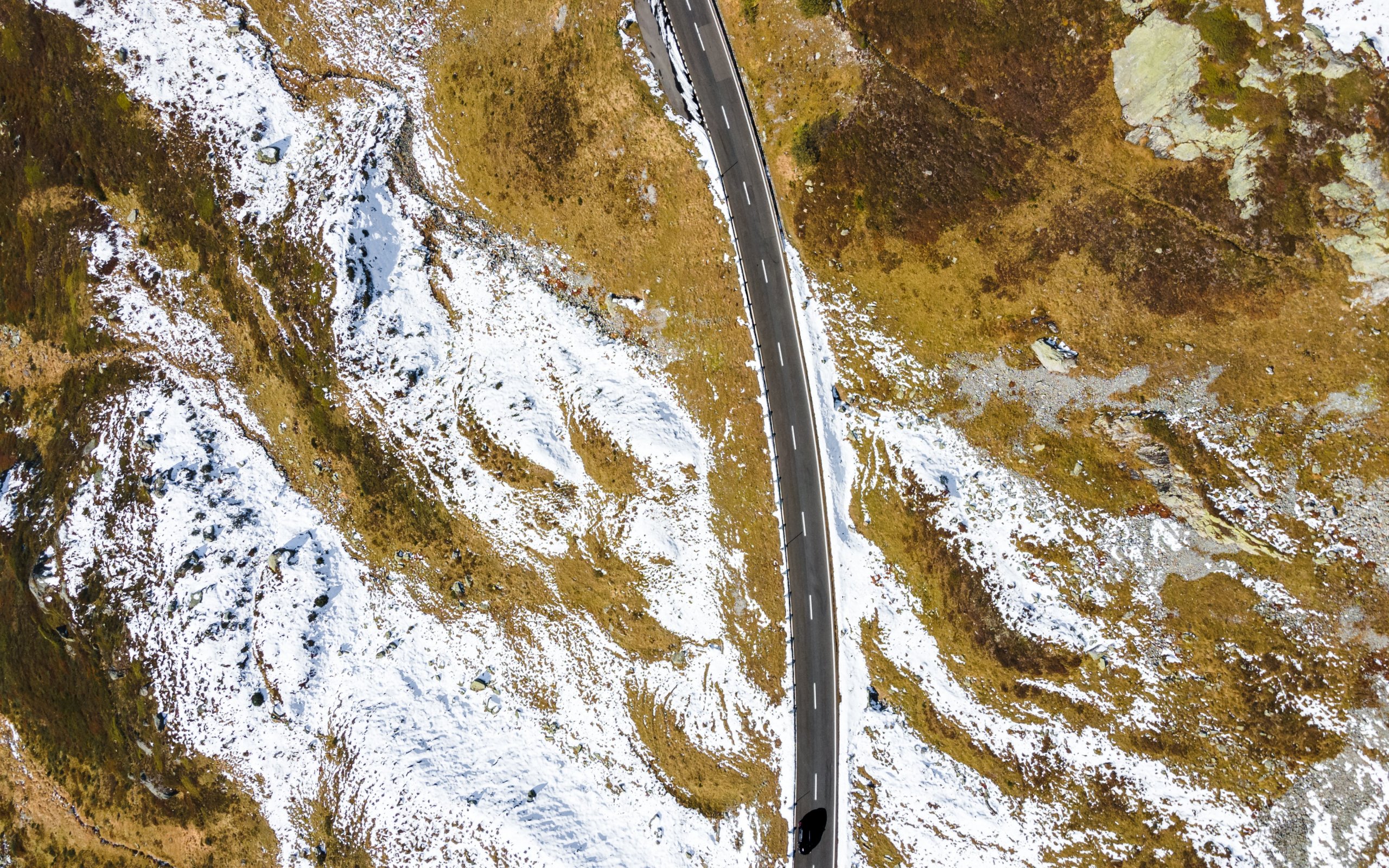 Wallpaper: top view, road, snow - 2560x1600