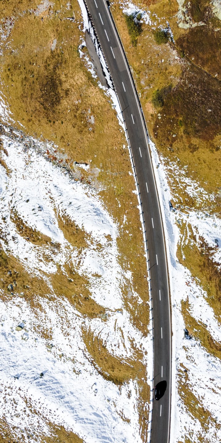 Wallpaper: top view, road, snow - 720x1440