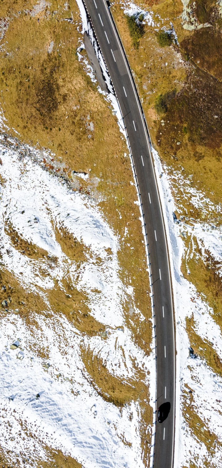 Wallpaper: top view, road, snow - 720x1520