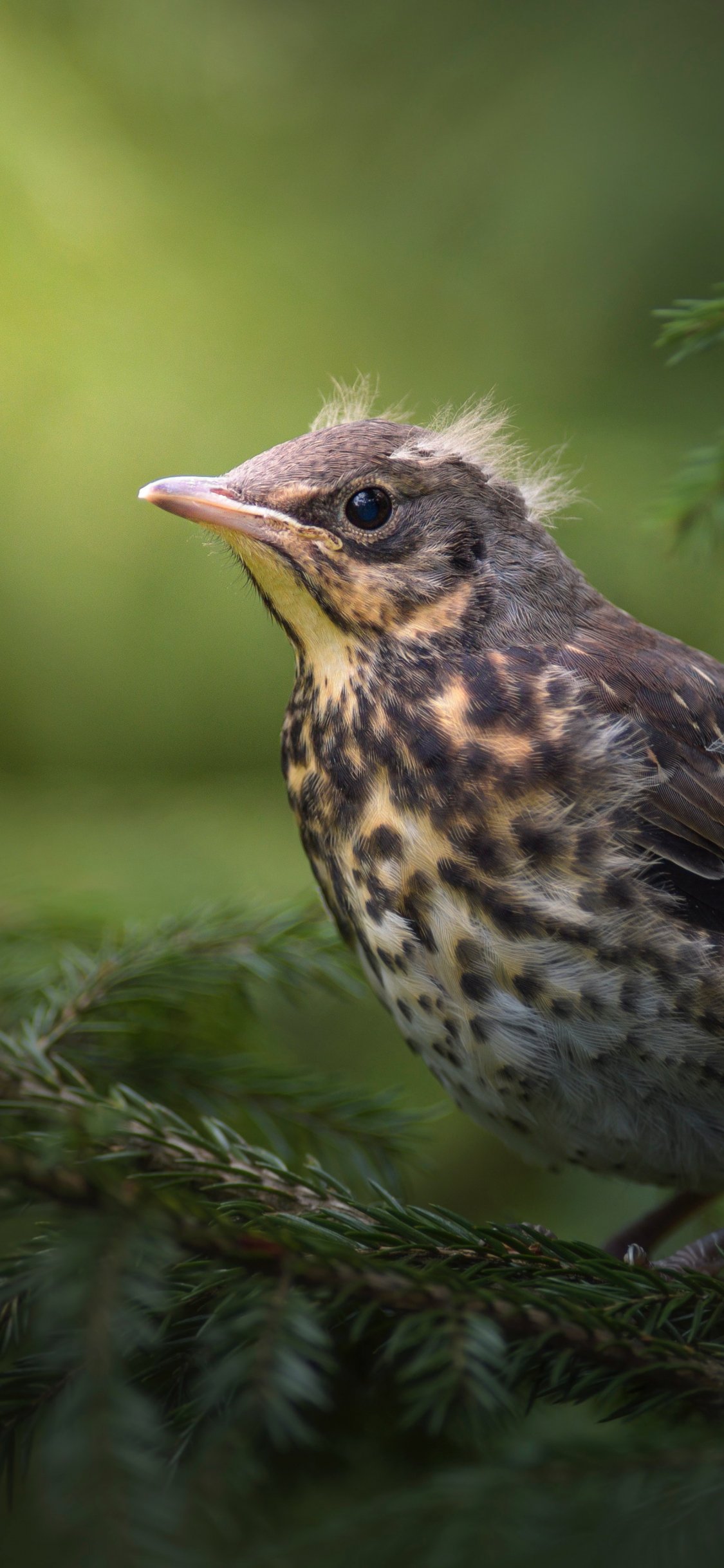 Wallpaper: chick, thrush, mountain ash, bird - 1125x2436
