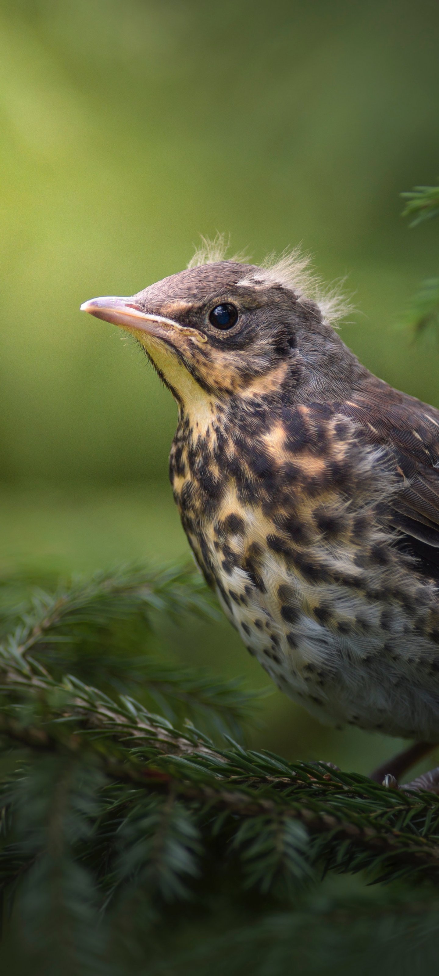 Wallpaper: chick, thrush, mountain ash, bird - 1440x3200