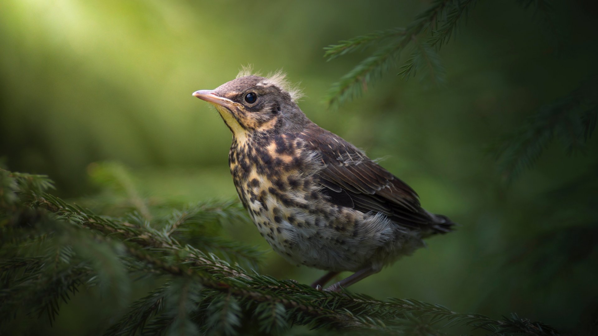 Wallpaper: chick, thrush, mountain ash, bird - 1920x1080
