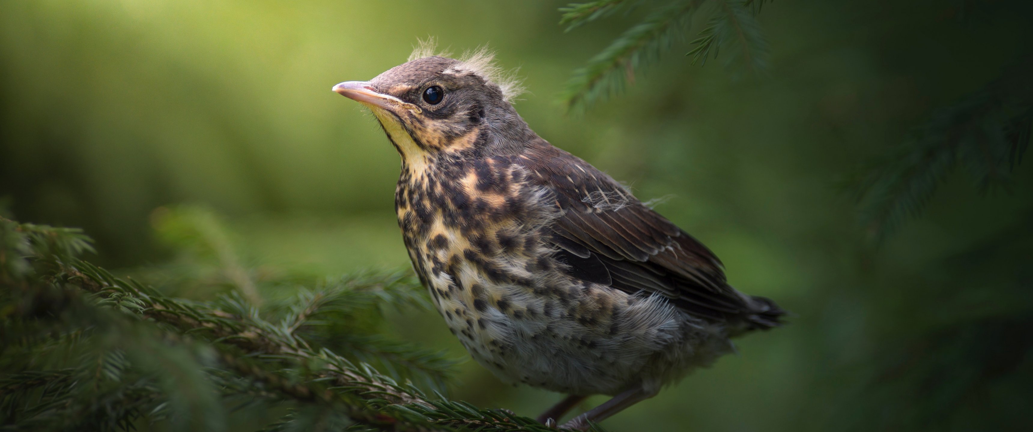 Wallpaper: chick, thrush, mountain ash, bird - 3440x1440