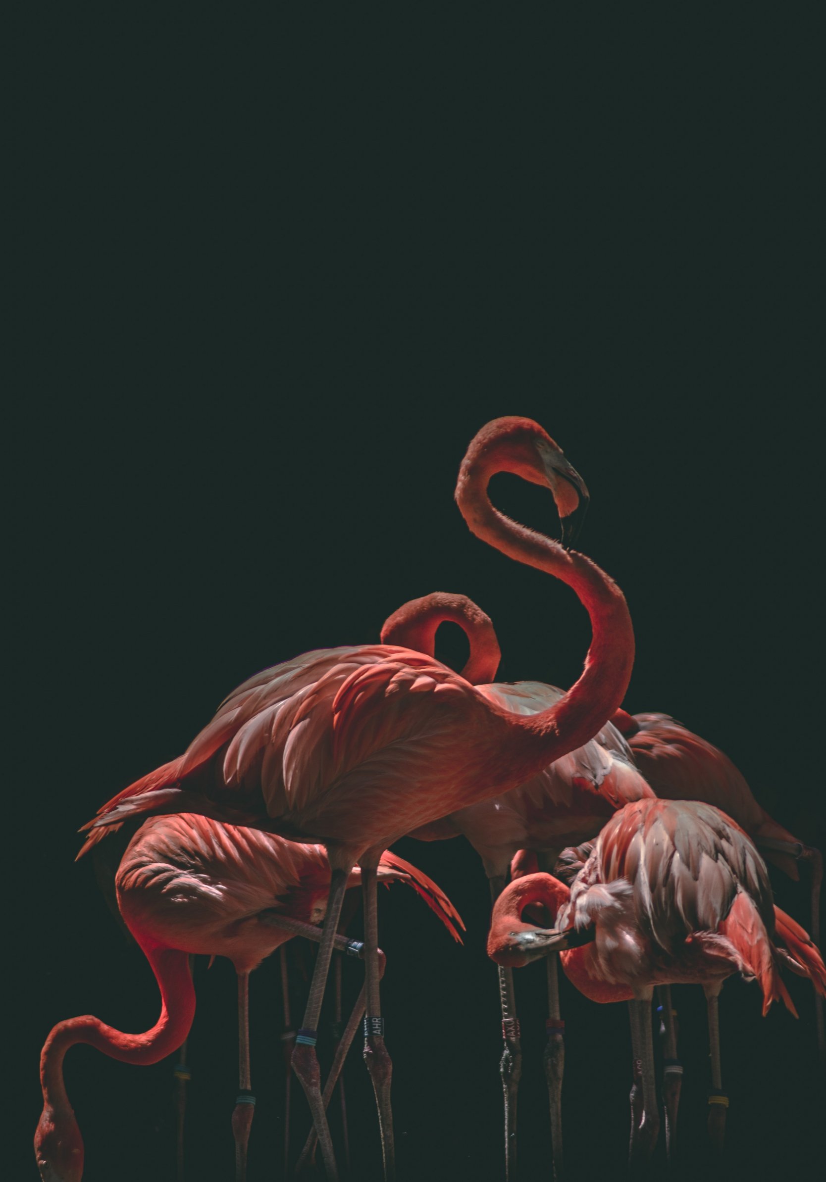 Wallpaper: flamingo, bird, black background - 1668x2388