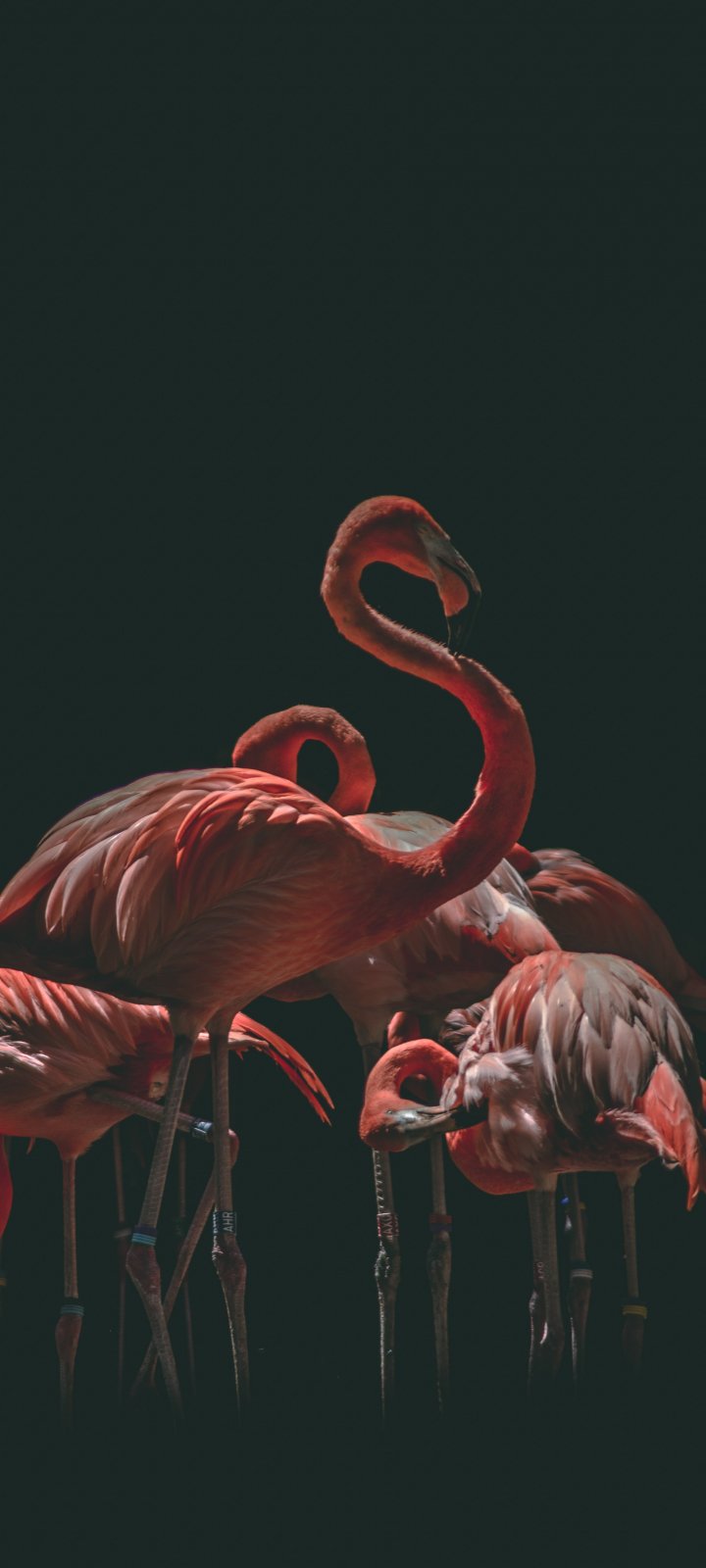 Wallpaper: flamingo, bird, black background - 720x1600