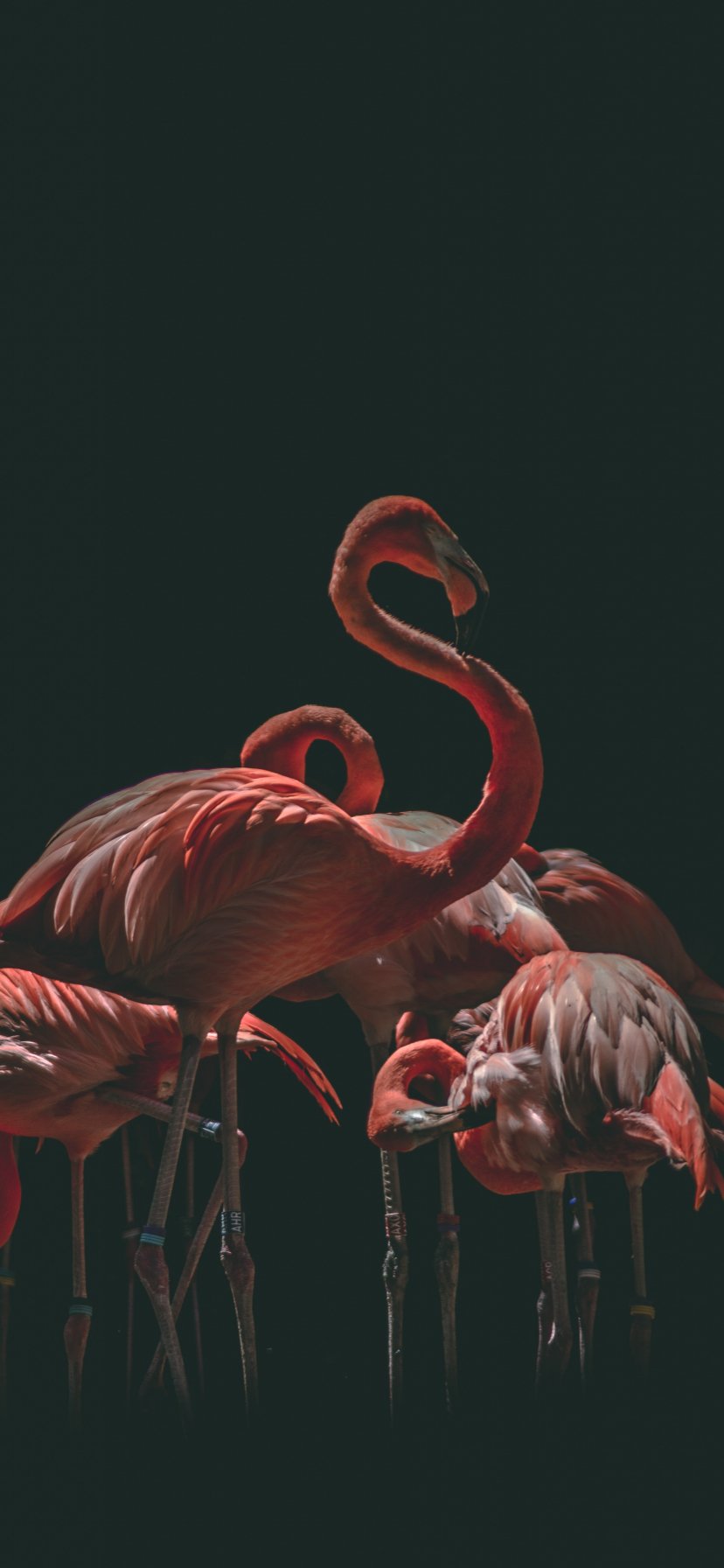 Wallpaper: flamingo, bird, black background - 828x1792