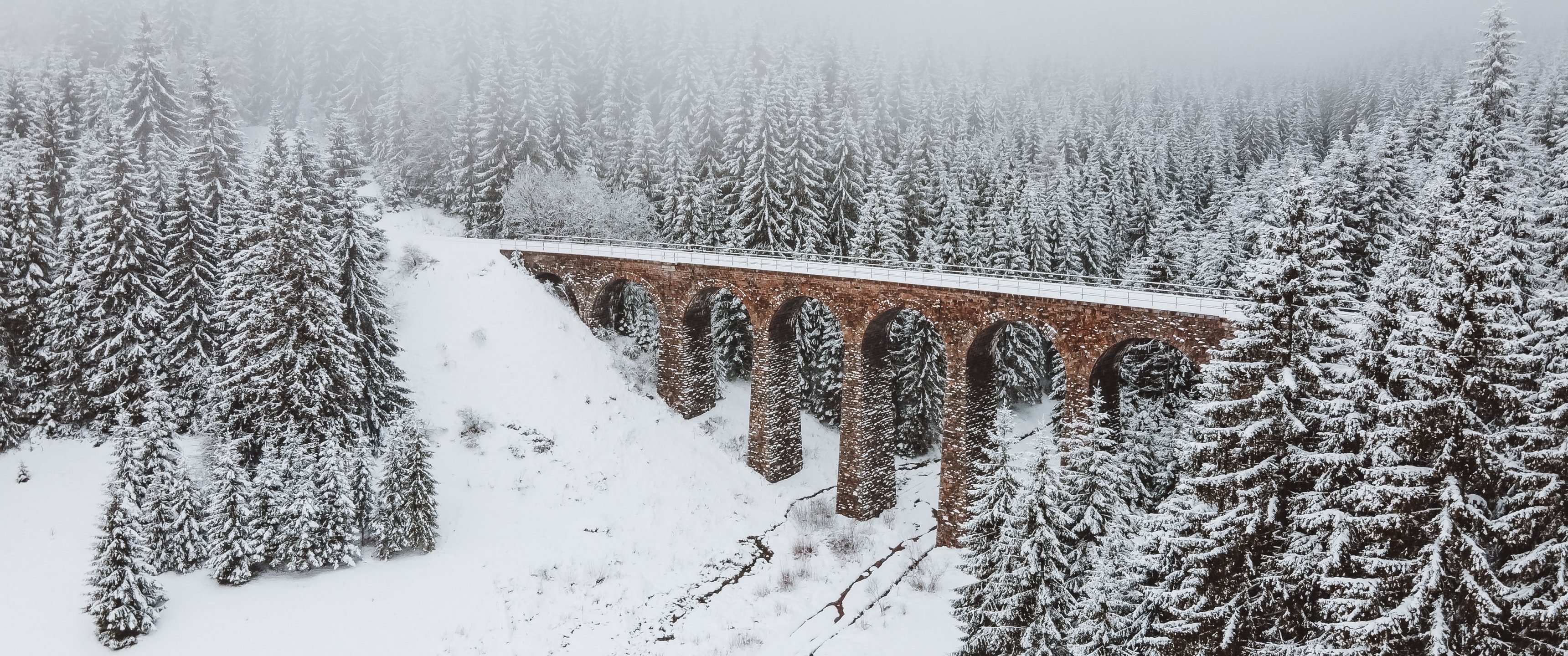 Wallpaper: bridge, winter, snow - 3440x1440