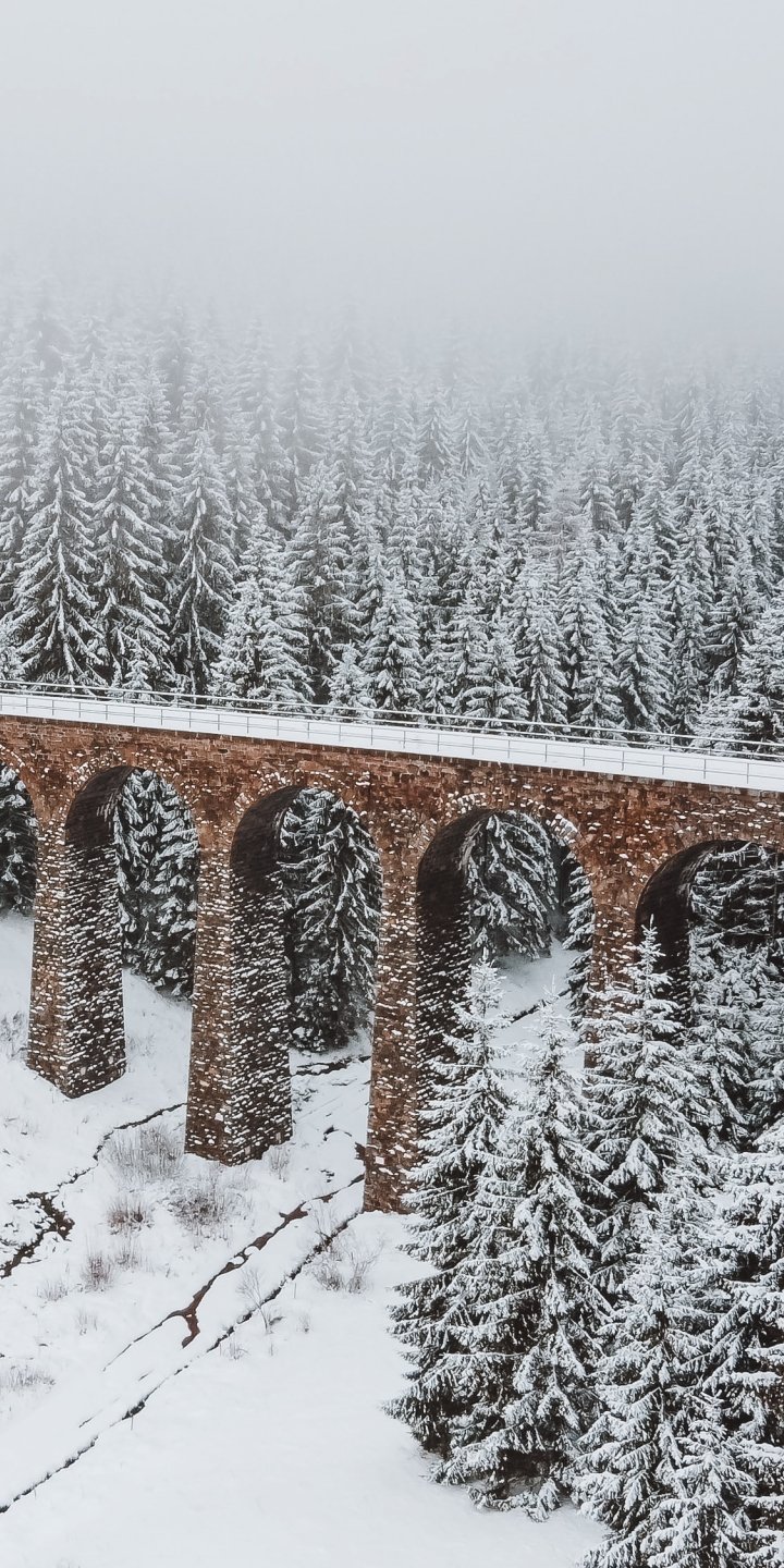 Wallpaper: bridge, winter, snow - 720x1440