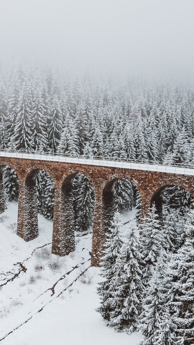 Wallpaper: bridge, winter, snow - 750x1334