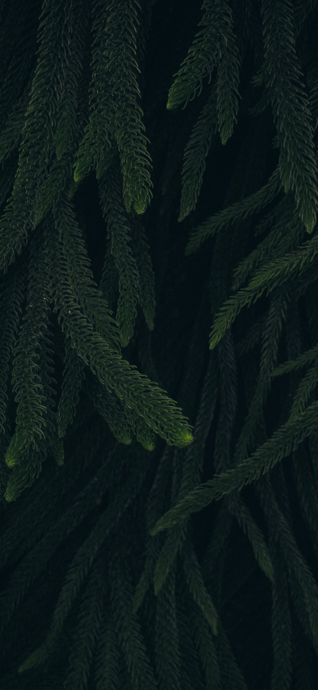 Wallpaper: pine, green, black background - 1080x2340