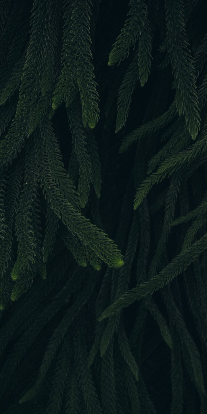 Wallpaper: pine, green, black background - 720x1440
