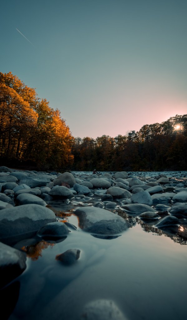 Wallpaper: stones, forest, water - 600x1024