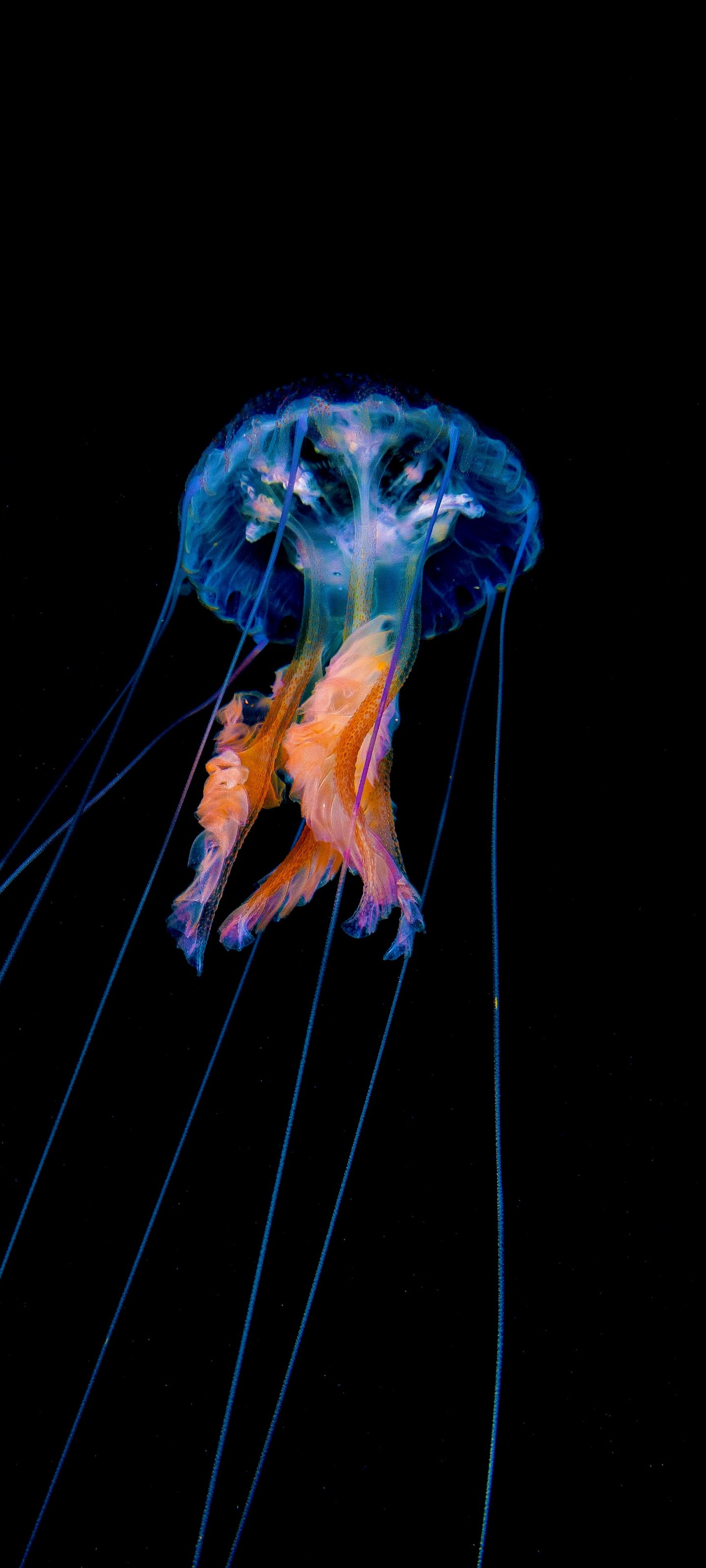 Wallpaper: jellyfish, dark background - 1440x3200