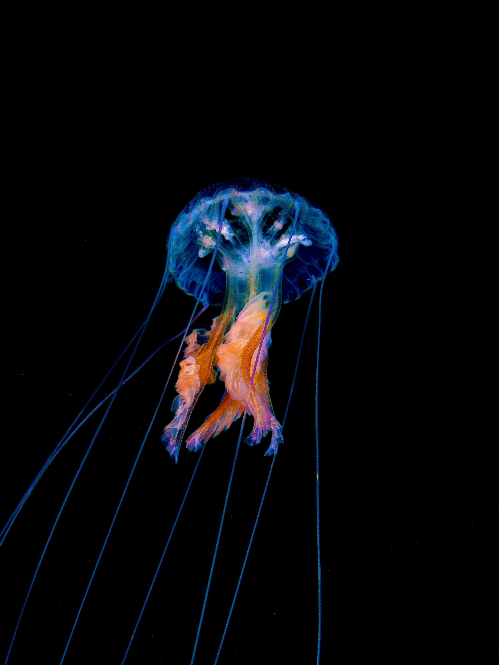 Wallpaper: jellyfish, dark background - 1620x2160