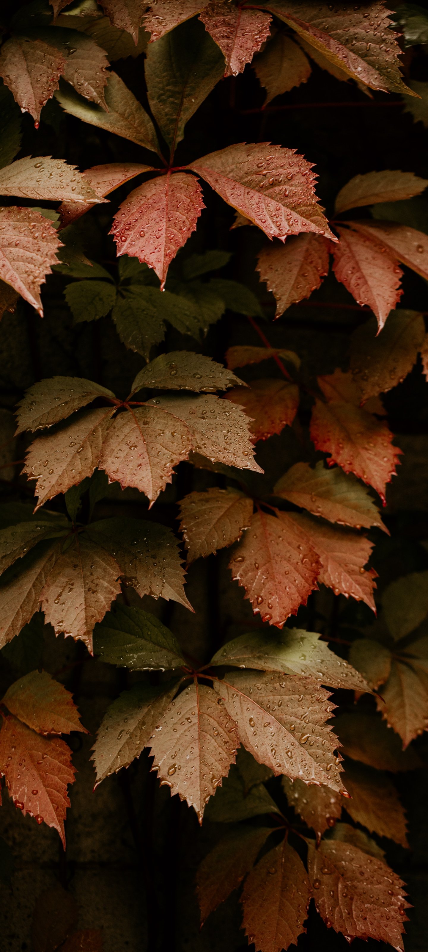 Wallpaper: foliage, autumn, drops - 1440x3200
