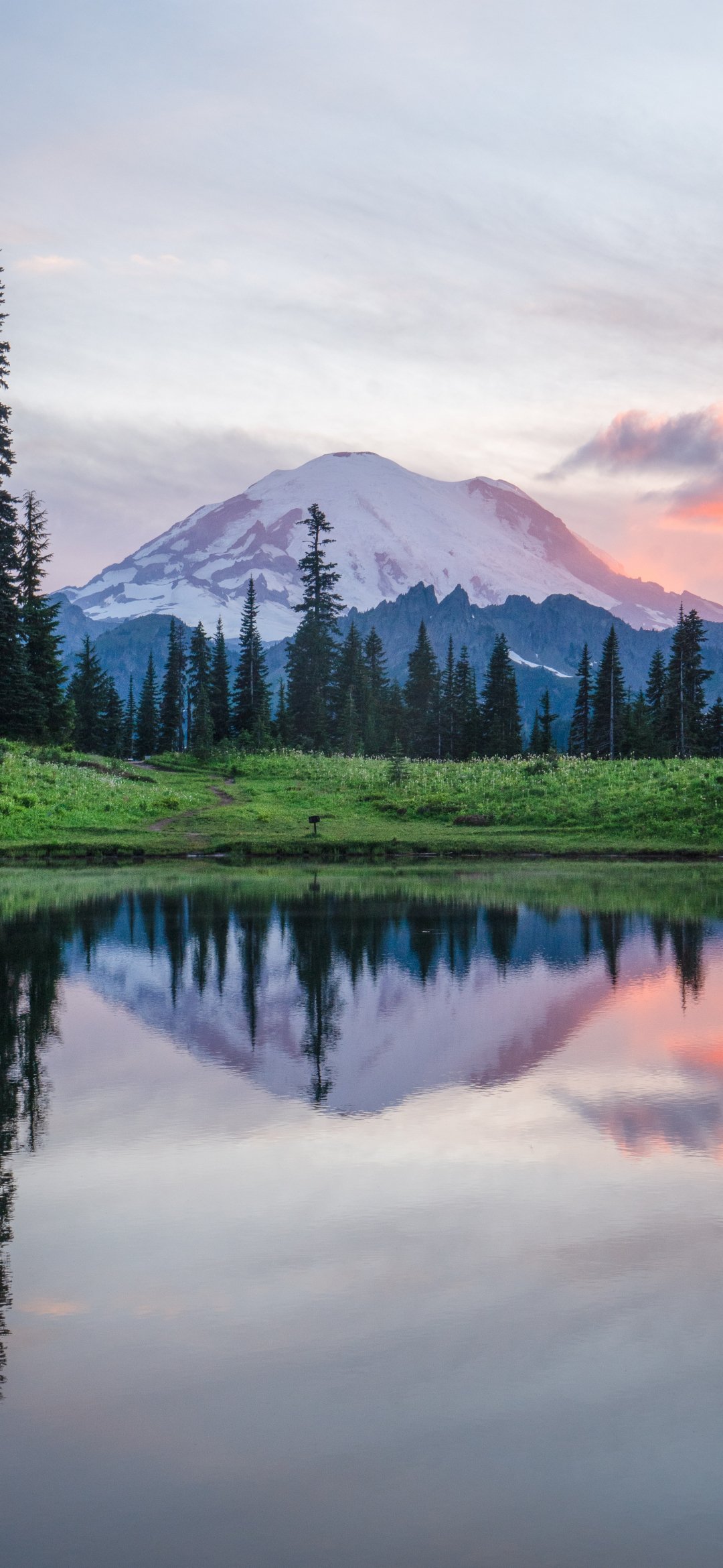 Wallpaper: mount rainier, lake, landscape - 1080x2340