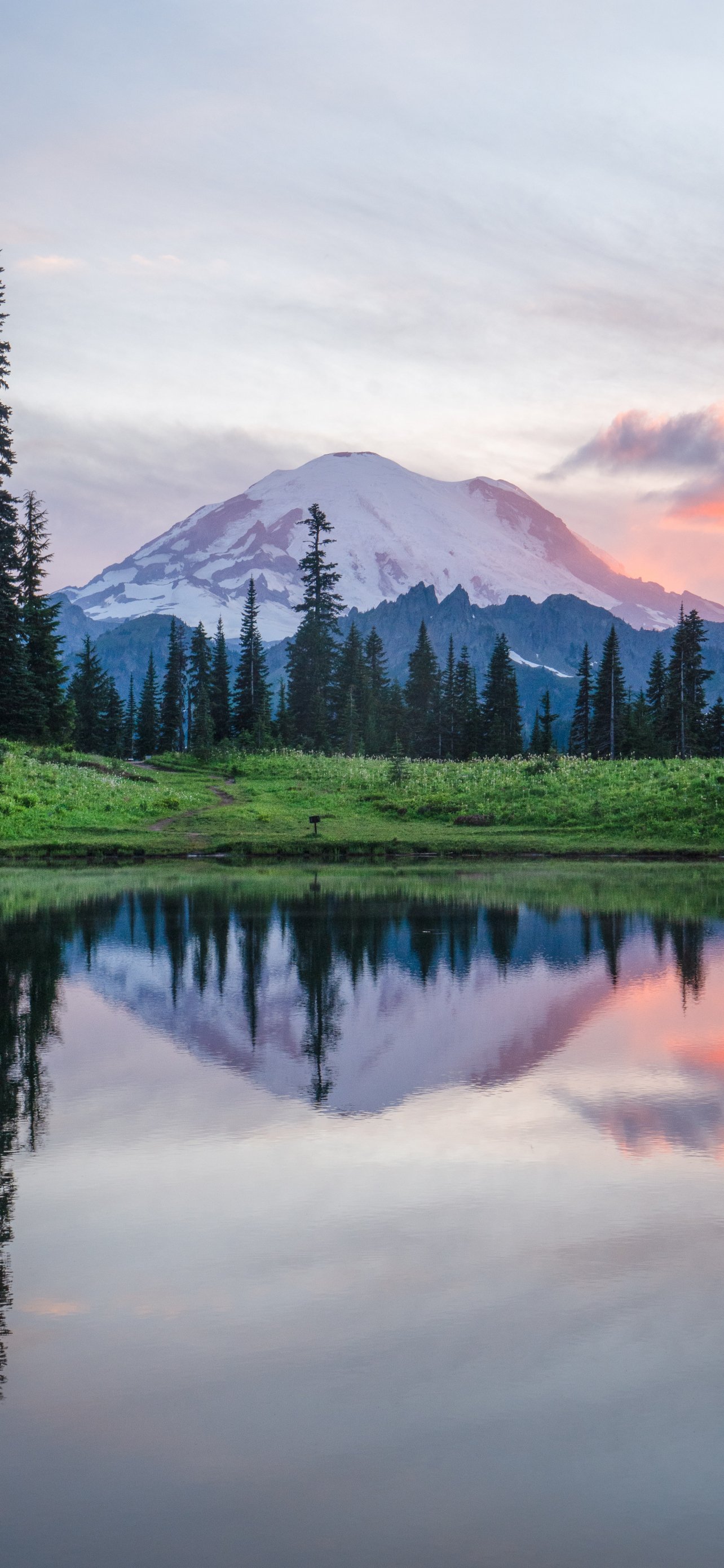 Wallpaper: mount rainier, lake, landscape - 1284x2778