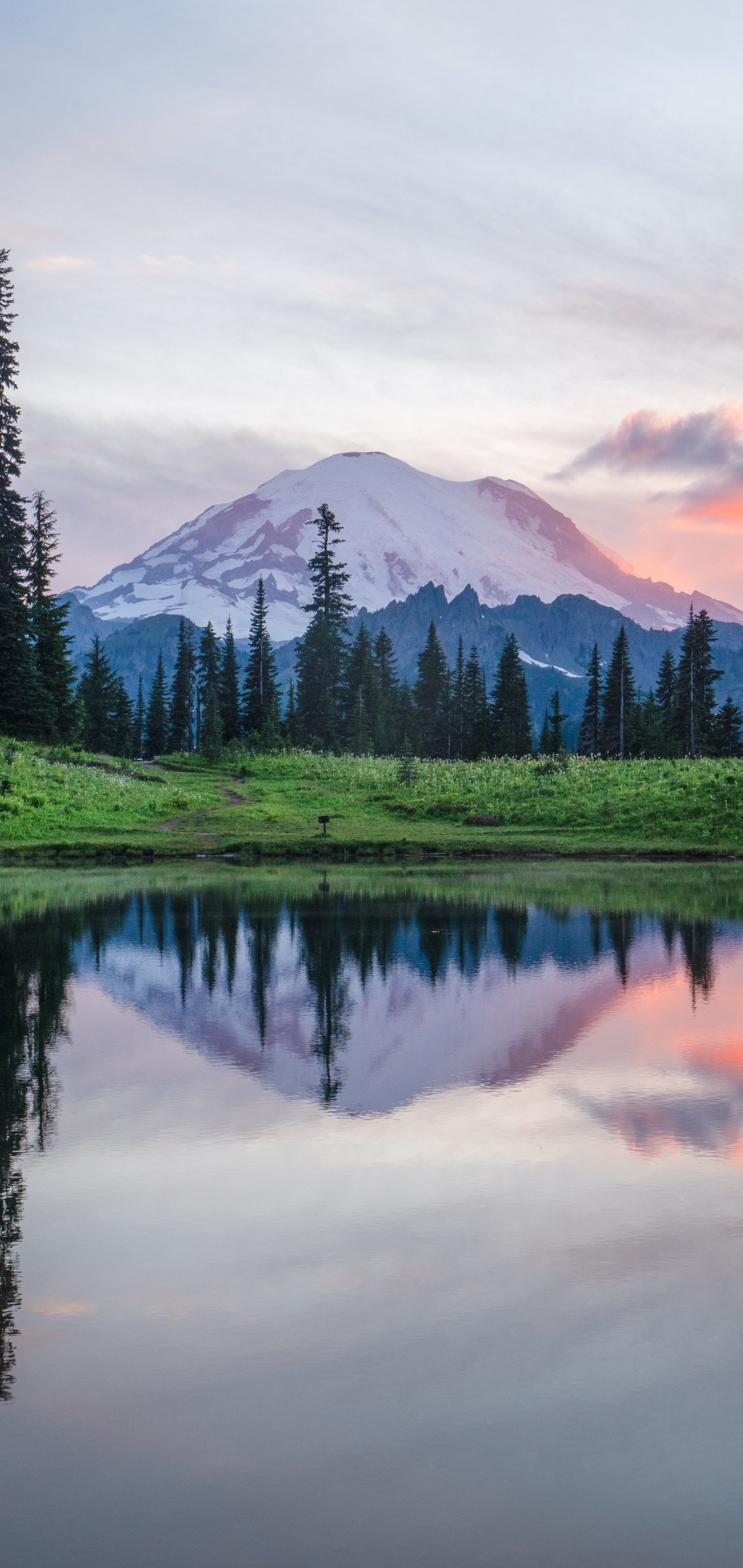 Wallpaper: mount rainier, lake, landscape - 1440x3040