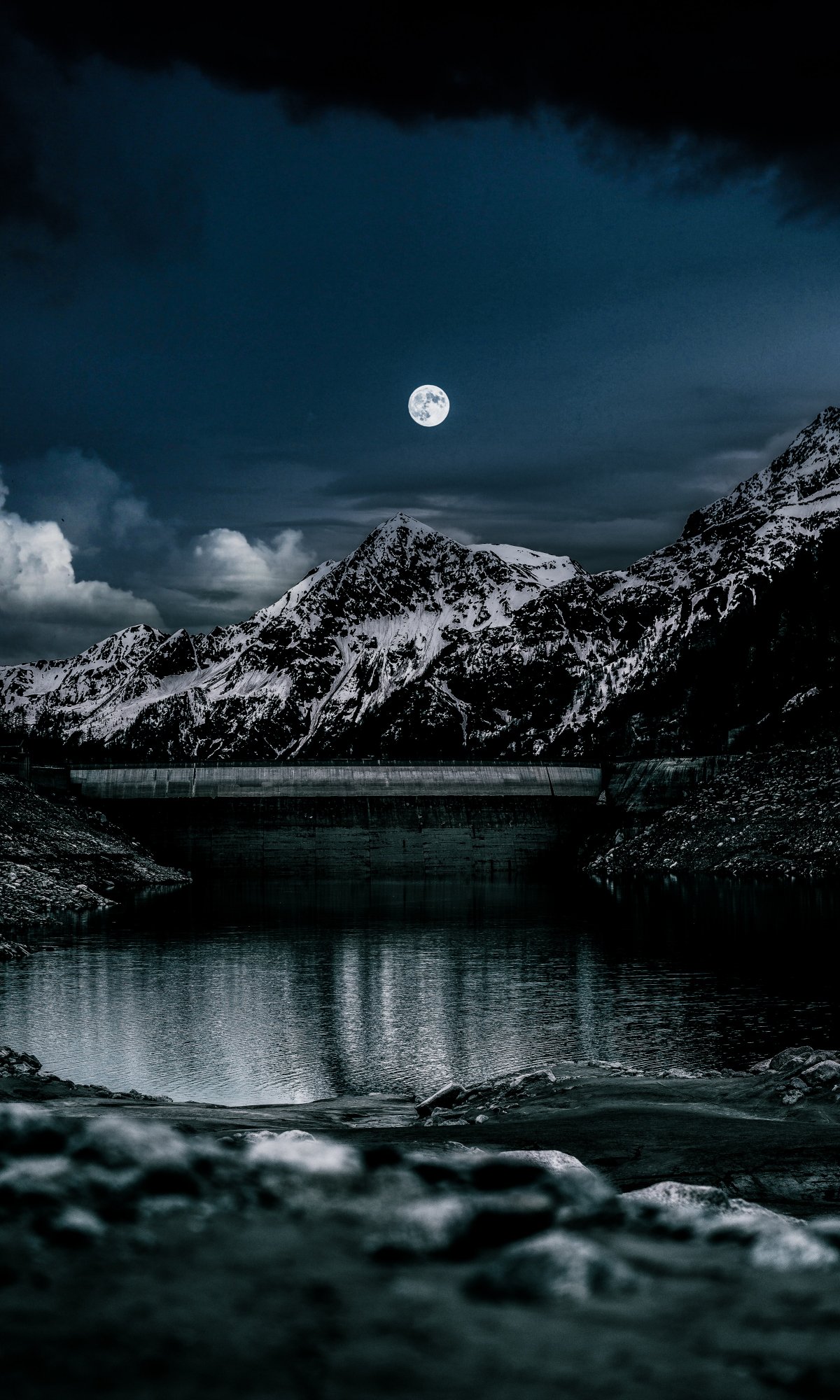 Wallpaper: night, moon, lake - 1200x2000