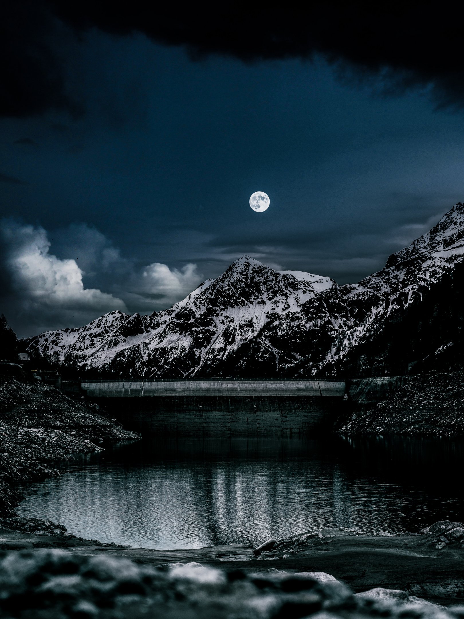 Wallpaper: night, moon, lake - 1620x2160