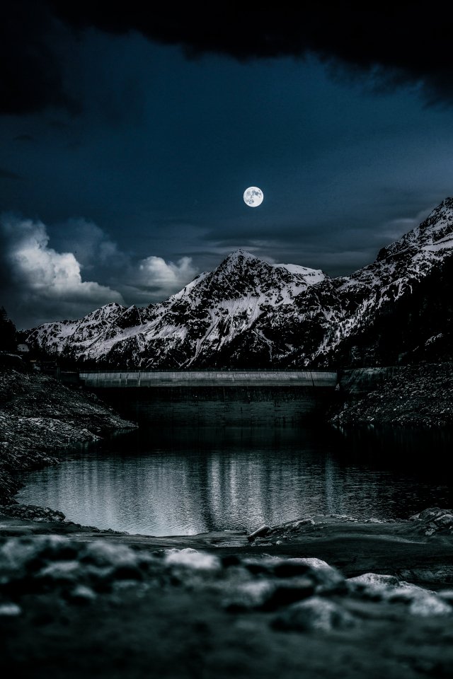 Wallpaper: night, moon, lake - 640x960