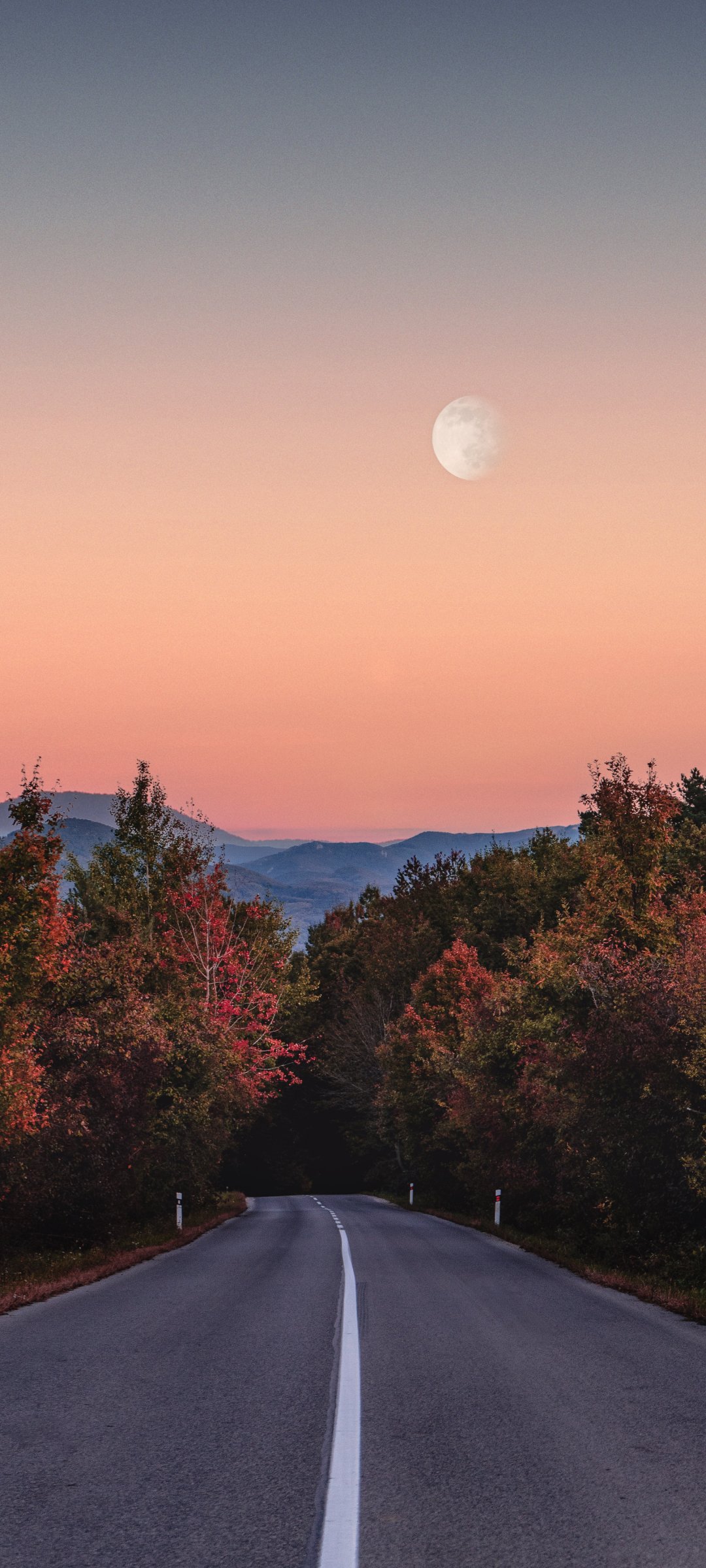 Wallpaper: road, forest, evening - 1080x2400