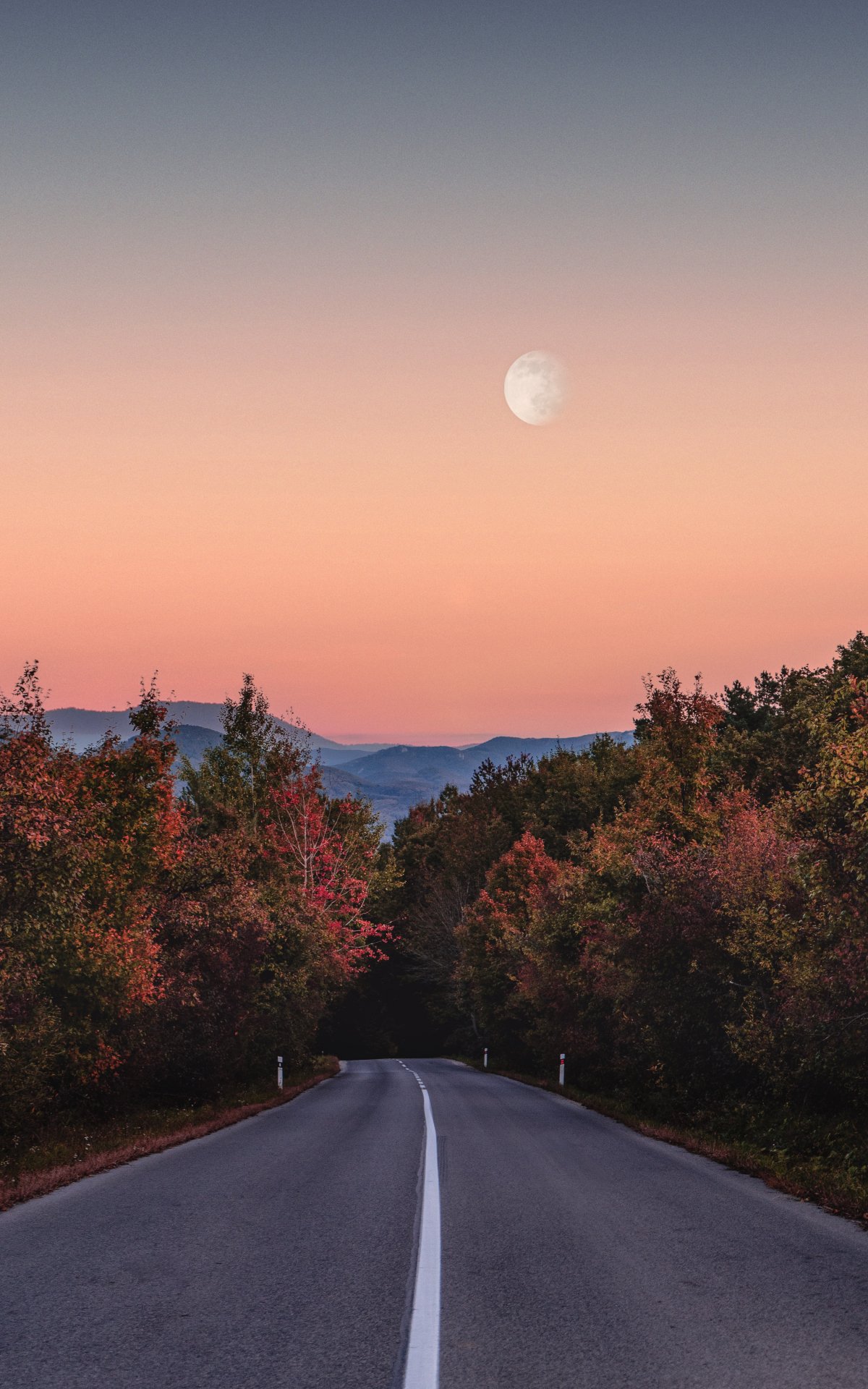 Wallpaper: road, forest, evening - 1200x1920