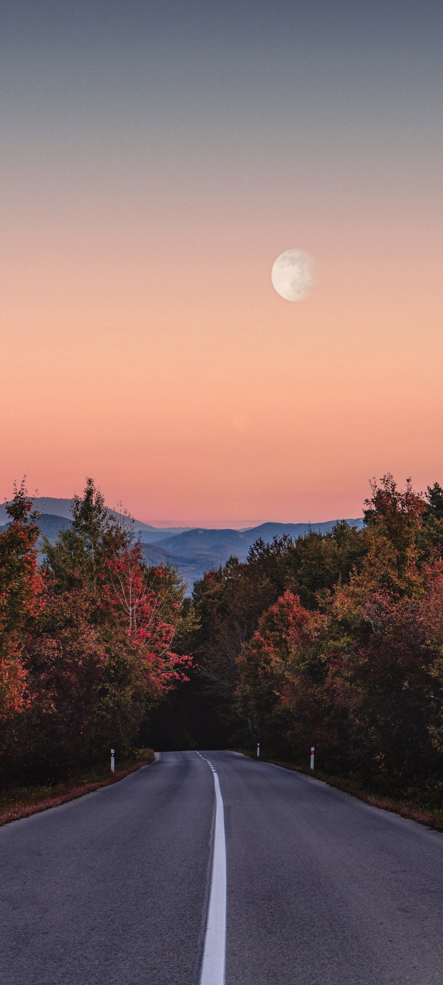 Wallpaper: road, forest, evening - 1440x3200