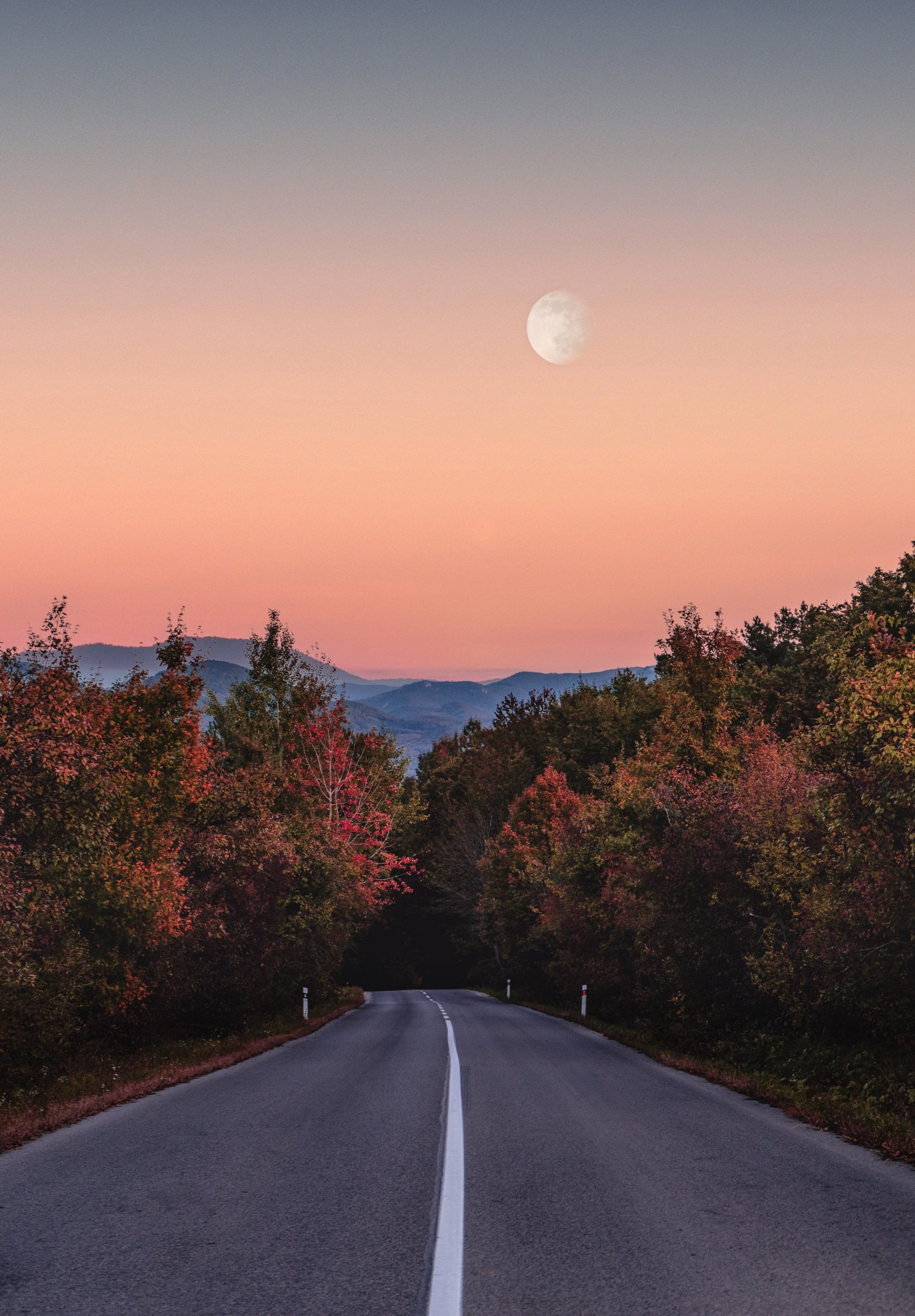Wallpaper: road, forest, evening - 1640x2360