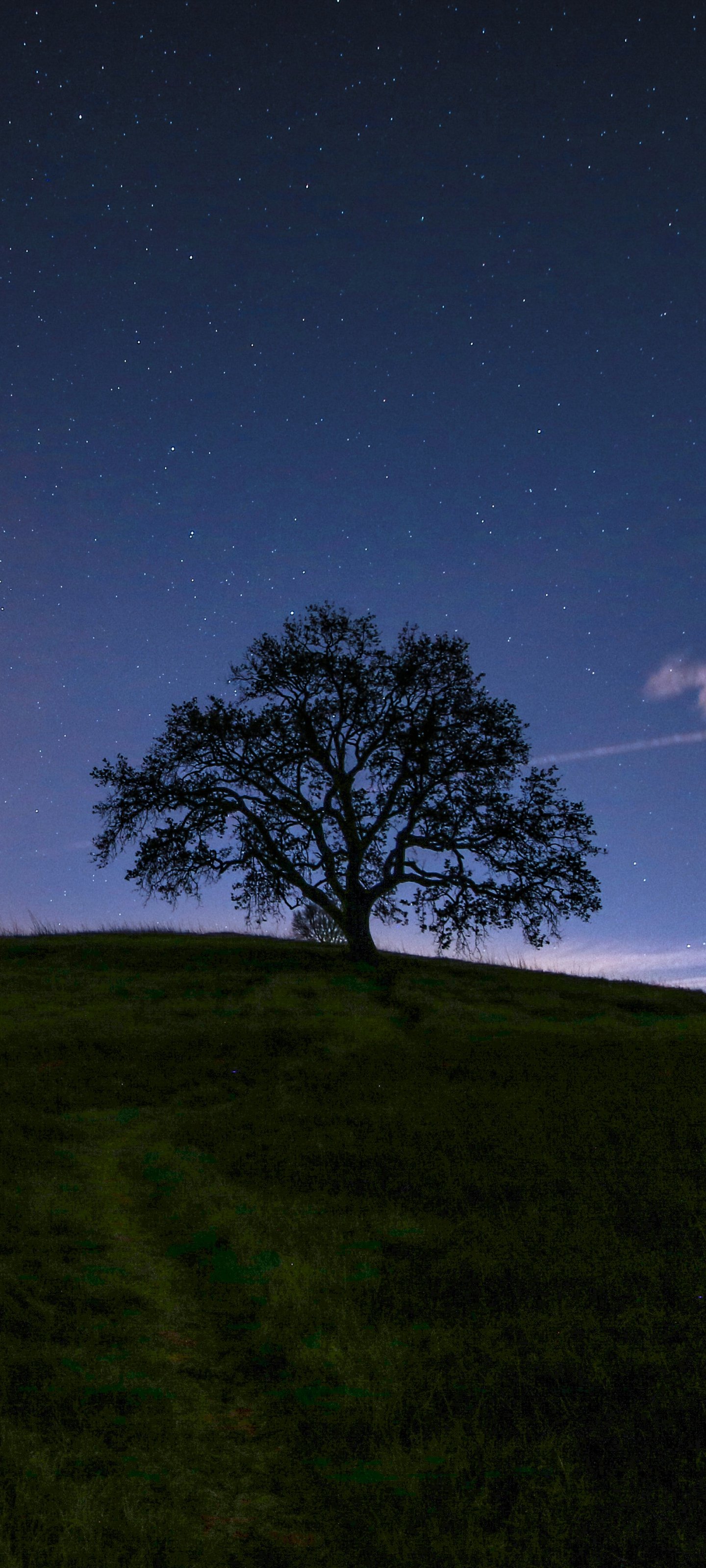 Wallpaper: tree, starry sky, night - 1440x3200