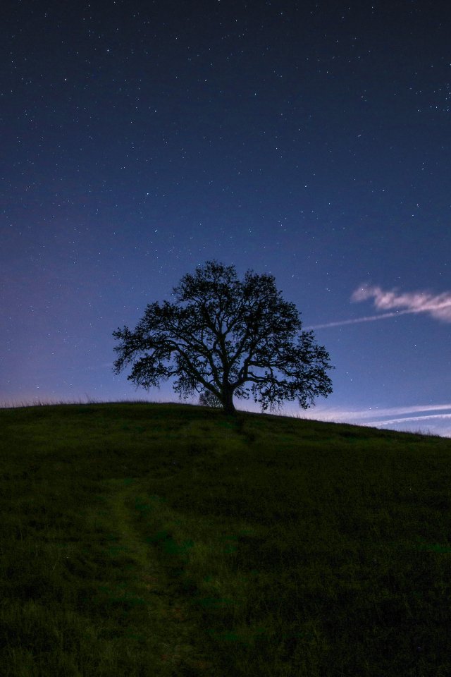 Wallpaper: tree, starry sky, night - 640x960
