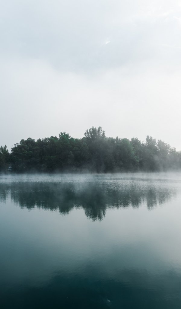 Wallpaper: fog, lake, forest - 600x1024