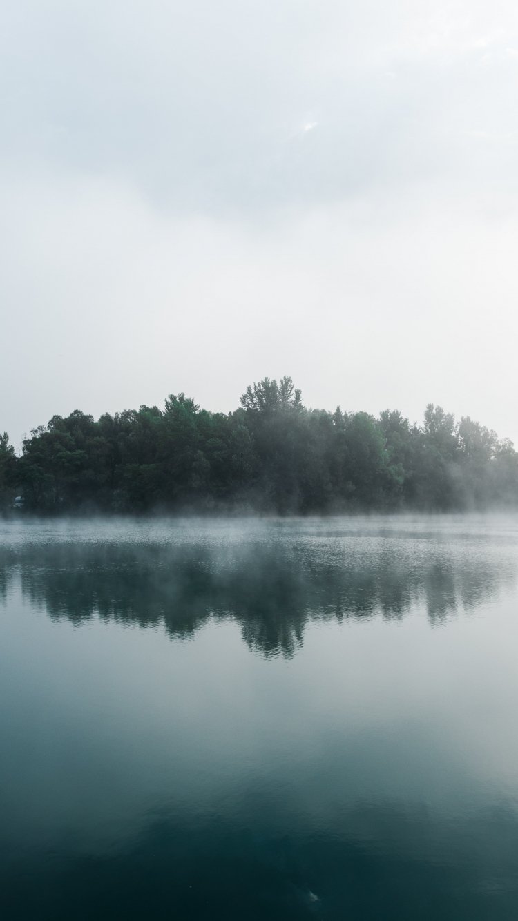Wallpaper: fog, lake, forest - 750x1334