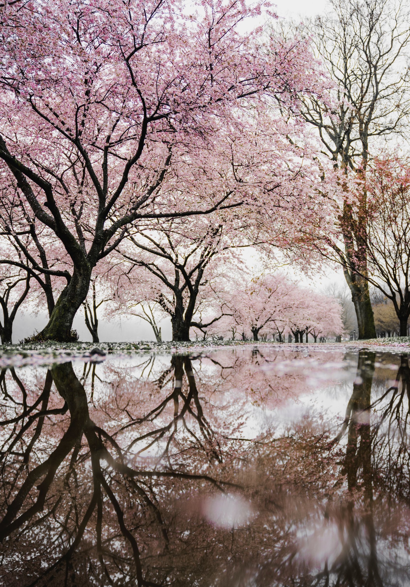 Wallpaper: sakura, Japan, reflection - 1668x2388