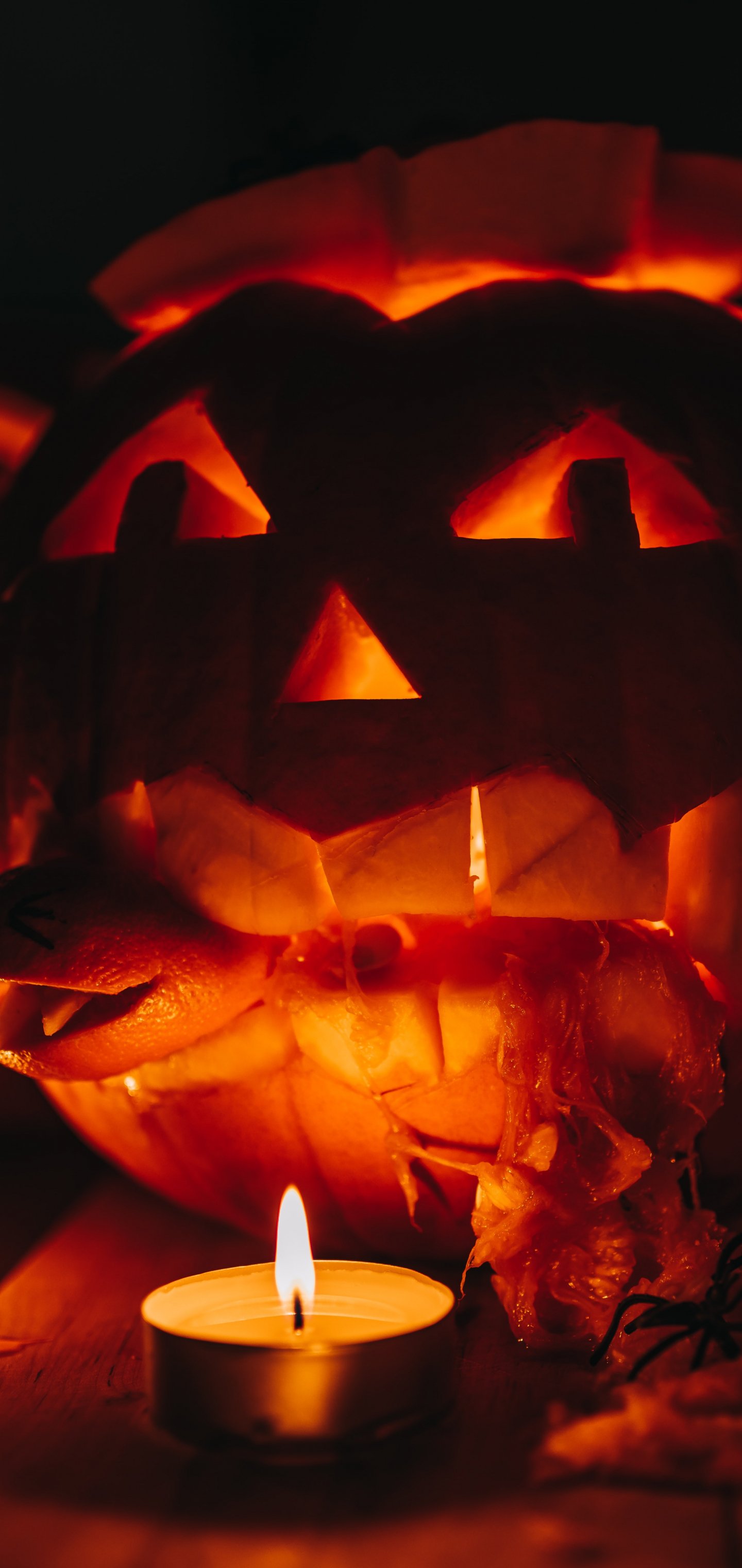 Wallpaper: halloween, pumpkin, candles - 1440x3040