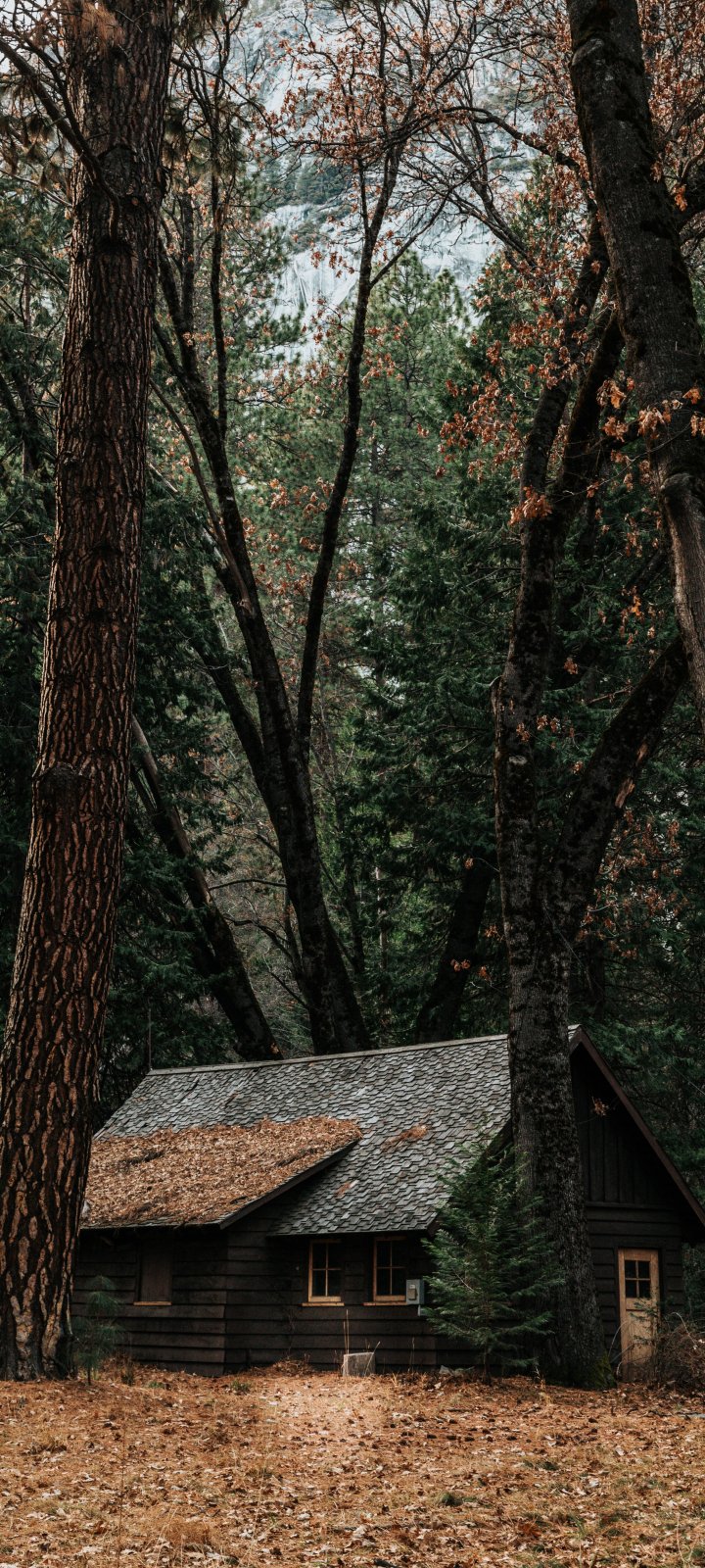 Wallpaper: a house in the woods, coniferous forest - 720x1600