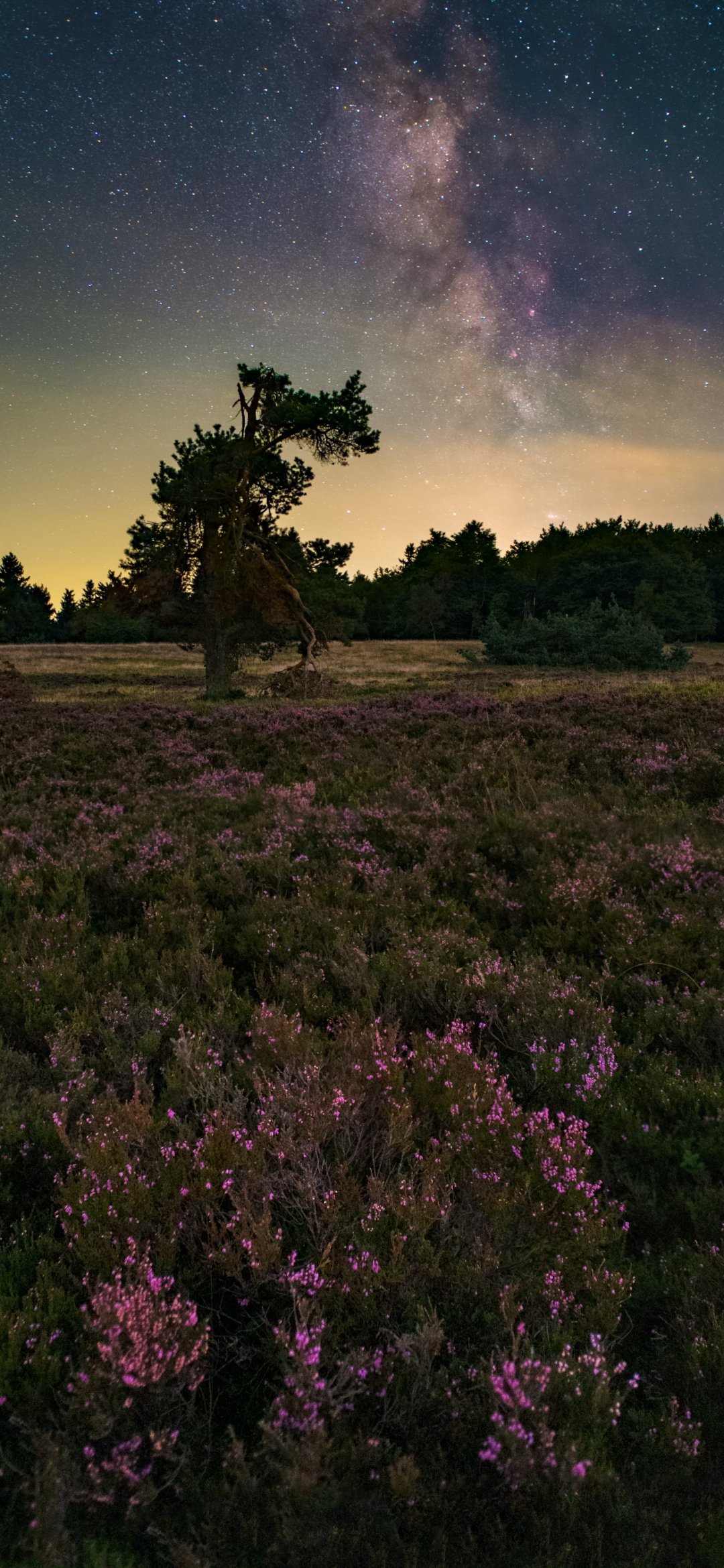 Wallpaper: flower field, starry sky - 1080x2340